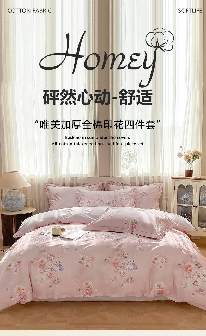 当前位置: 91家纺网 > 商品网购 > 床品套件 > 四件套 > 全棉普通四件套 > XIWEN-希文家纺 2026新款40支全棉纯棉13376数码印花四件套-第一批 百花羞