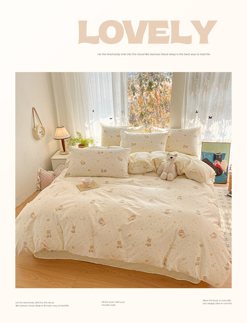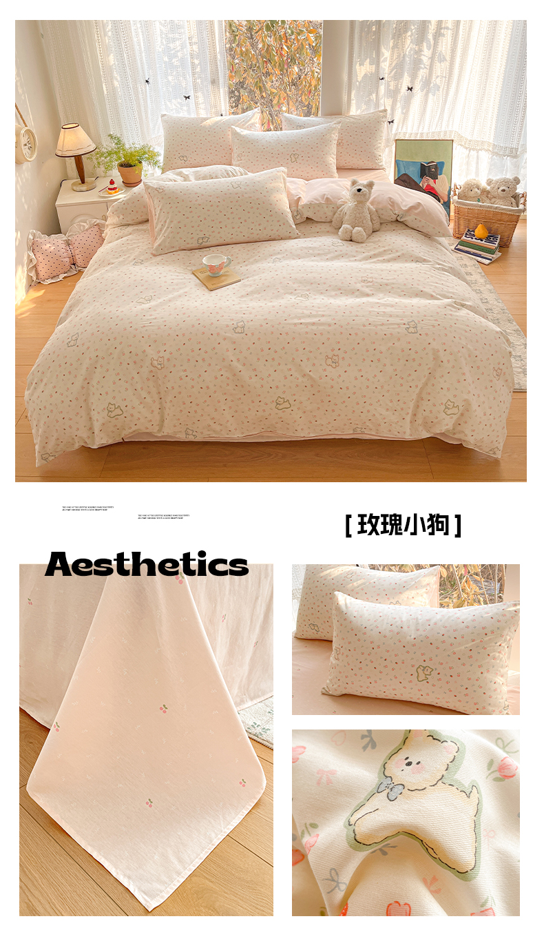 (总)吉象家纺 2026春夏新款全棉纯棉印花四件套,可爱星人,爱心小龙,鼻涕狗,嘟嘟小熊,花园梦梦,萌星,免兔野餐会,甜酱小猫(粉),兔兔梦境 米,熊熊时光,眼镜狗狗