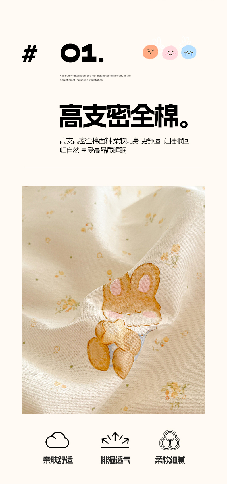 商品名称:吉象家纺 2026春夏新款全棉印花四件套第二批 星点兔语