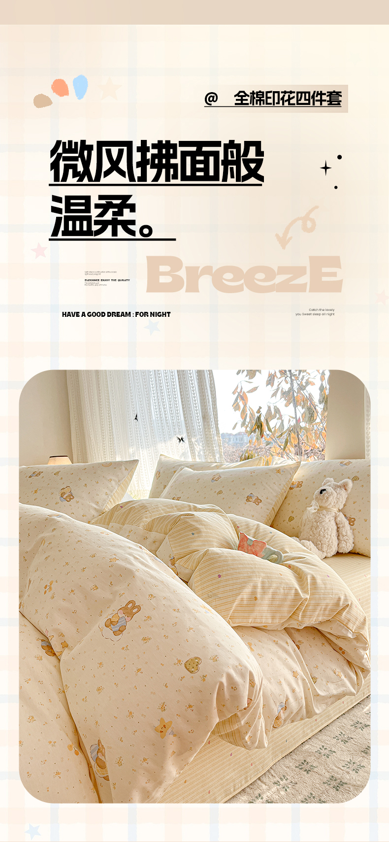 (总)吉象家纺 2026新款高支密全棉印花四件套,睡梦熊,布偶假期,彩虹木马,春游手记,点点小熊,度假恐龙,快乐小马,妙趣乐园,奶酪小可爱,秋日乐园,三小只,甜梦小精灵,童话花町,童年小事,温柔花朵熊,小小宇航员,星际仔仔,星星漫游记