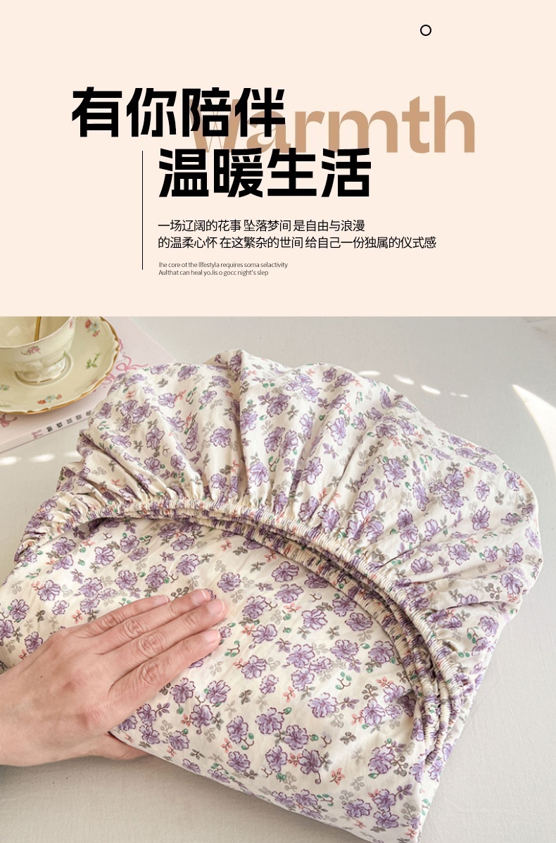 • 91家纺网 家纺一手货源 找家纺 圣比熊 2026新款A类云朵棉亲肤四季款床笠席梦思床罩全包床单三件套 紫韵星野