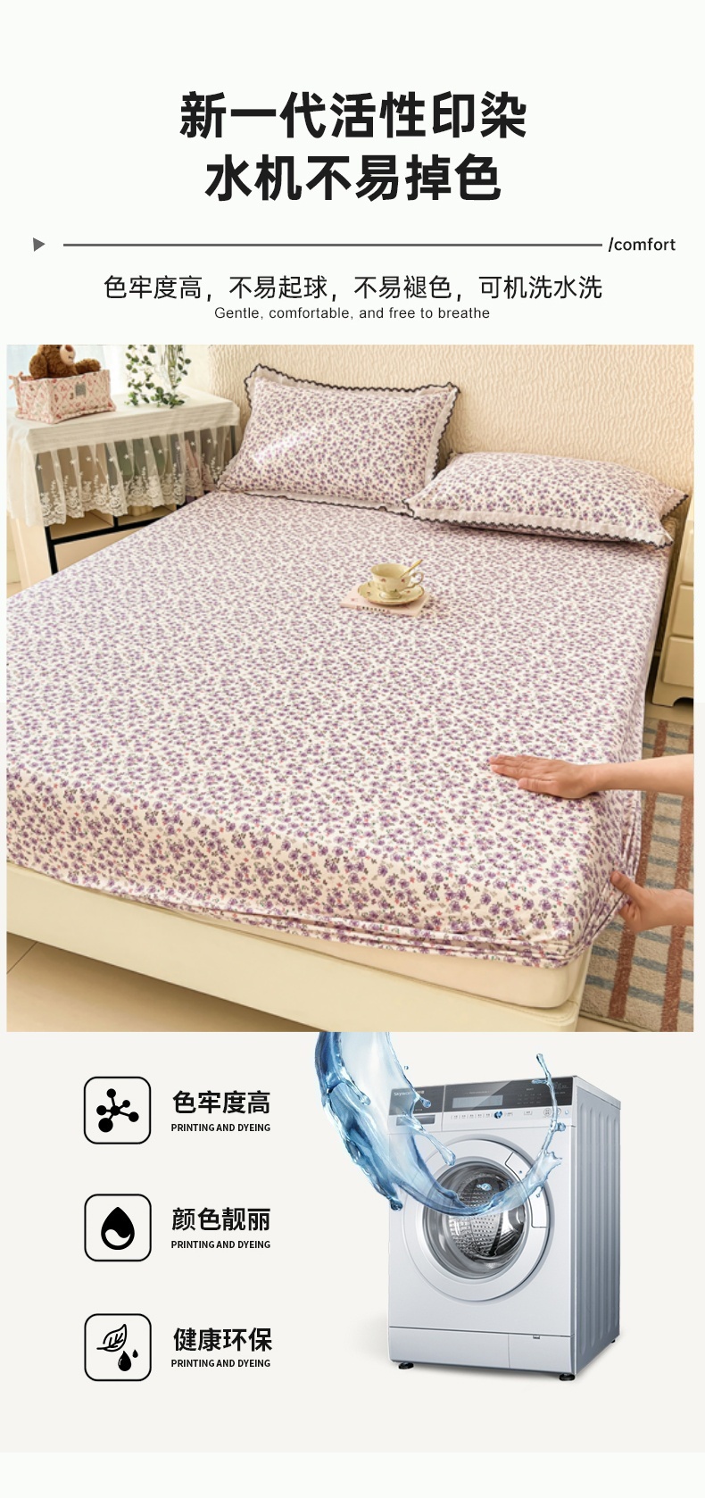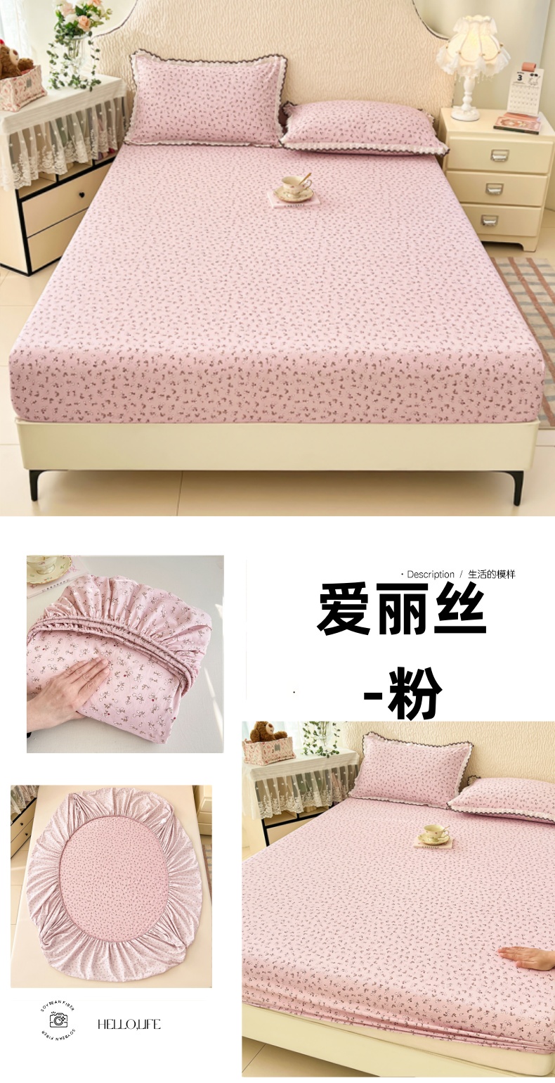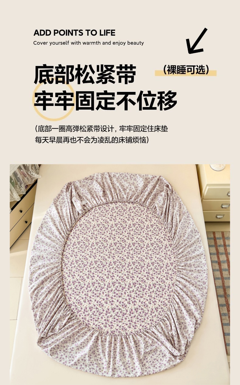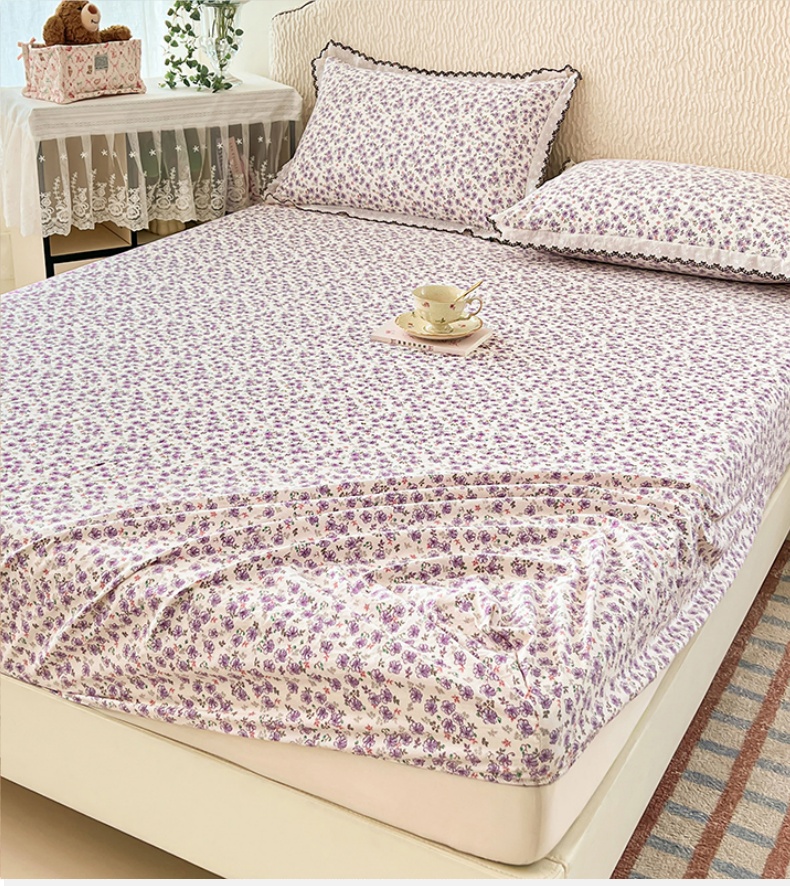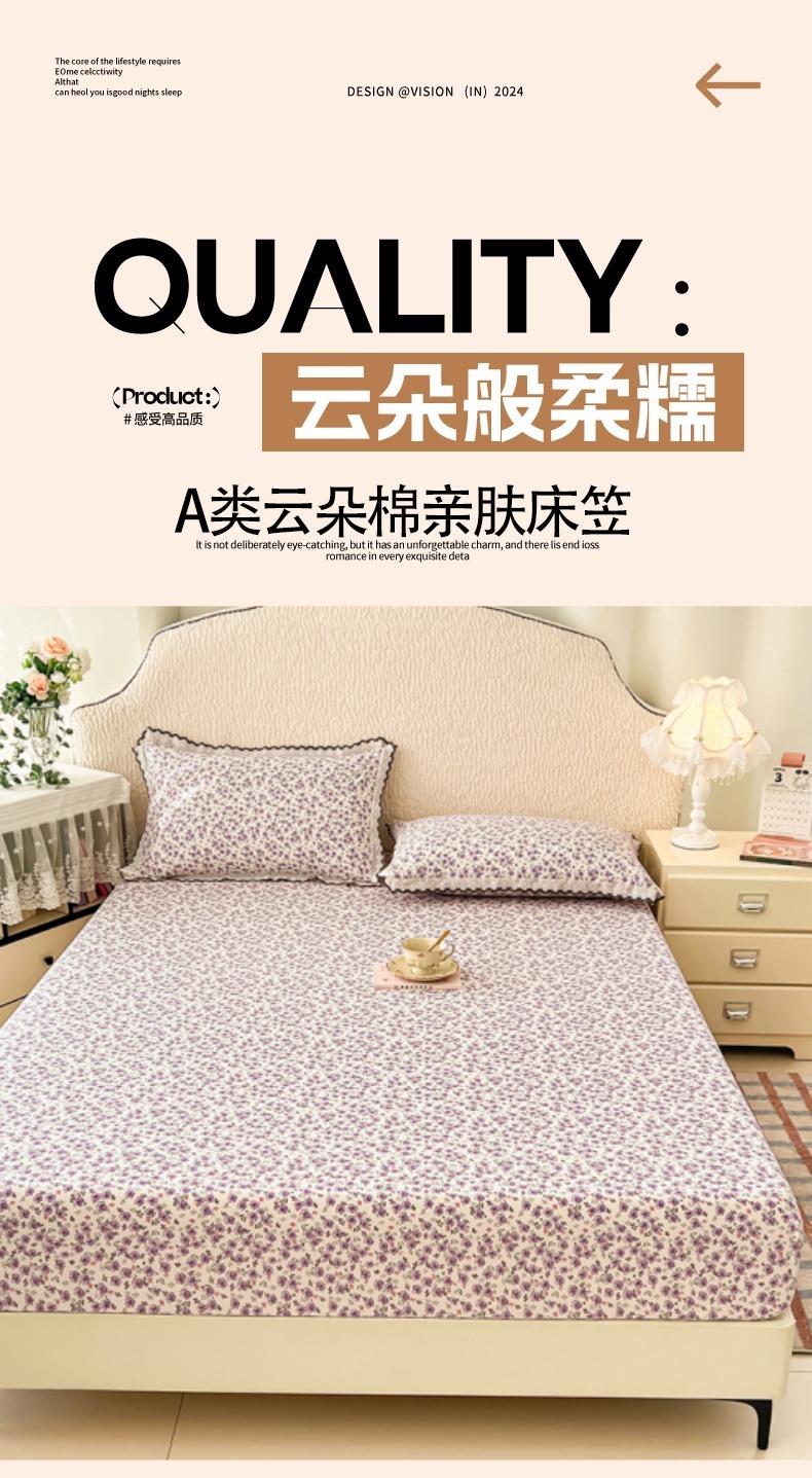 圣比熊 2026新款A类云朵棉亲肤四季款床笠席梦思床罩全包床单三件套 紫韵星野