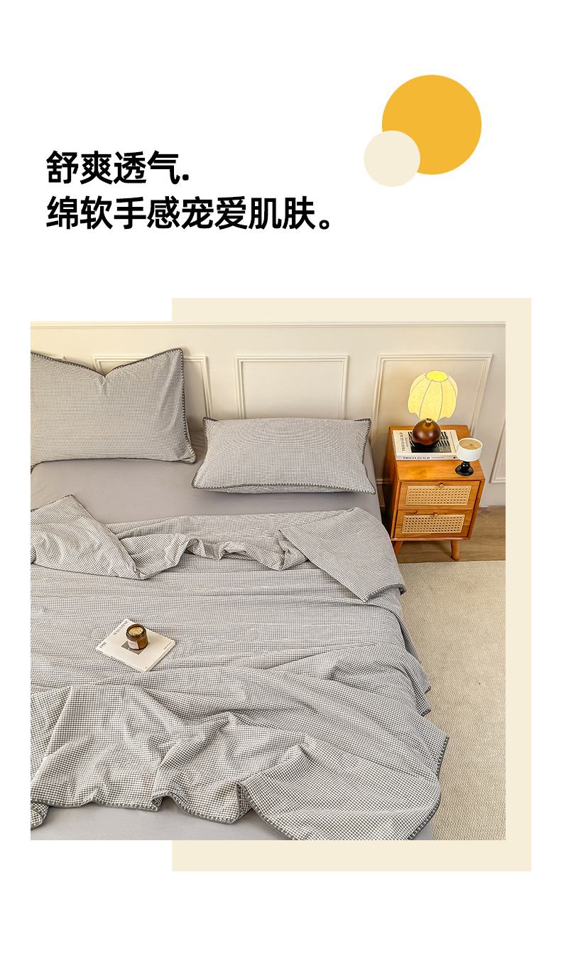 当前位置: 91家纺网 > 商品网购 > 被子 > 夏被 > 鸣升家纺 2026新款全棉色织水洗棉贝壳边棉花空调被夏凉被夏被四件套 月光灰