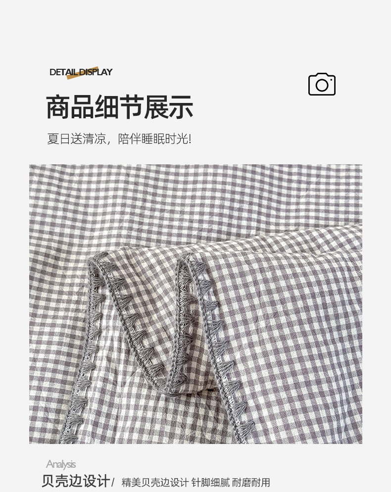 • 91家纺网 家纺一手货源 找家纺 鸣升家纺 2026新款全棉色织水洗棉贝壳边棉花空调被夏凉被夏被四件套 月光灰