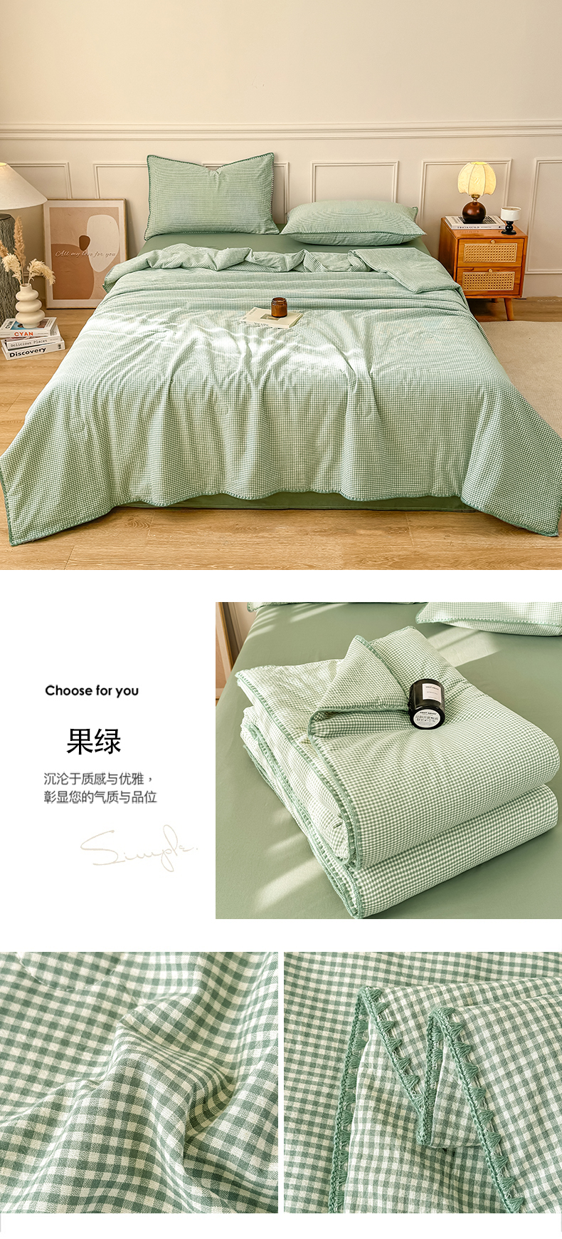 • 91家纺网 家纺一手货源 找家纺 (总)鸣升家纺 2026新款全棉色织水洗棉贝壳边棉花空调被夏凉被夏被四件套,果绿,姜黄,莎粉,天空蓝,月光灰,组合图仅供参考不可下单
