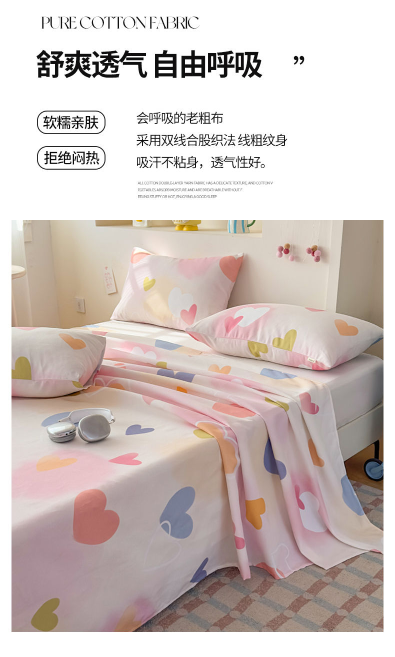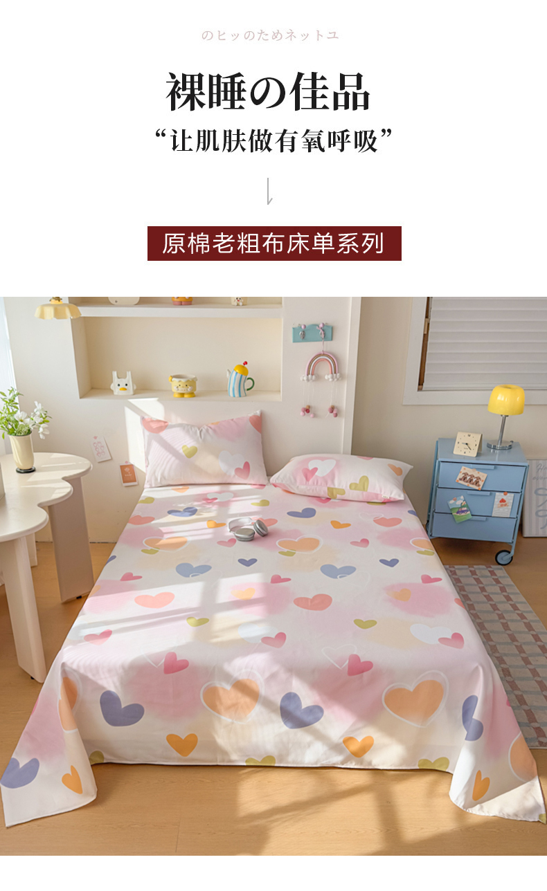 爱彼家纺 2026新款升级细沙印花老粗布床单单品床单床单单件-细沙系列四 甜心