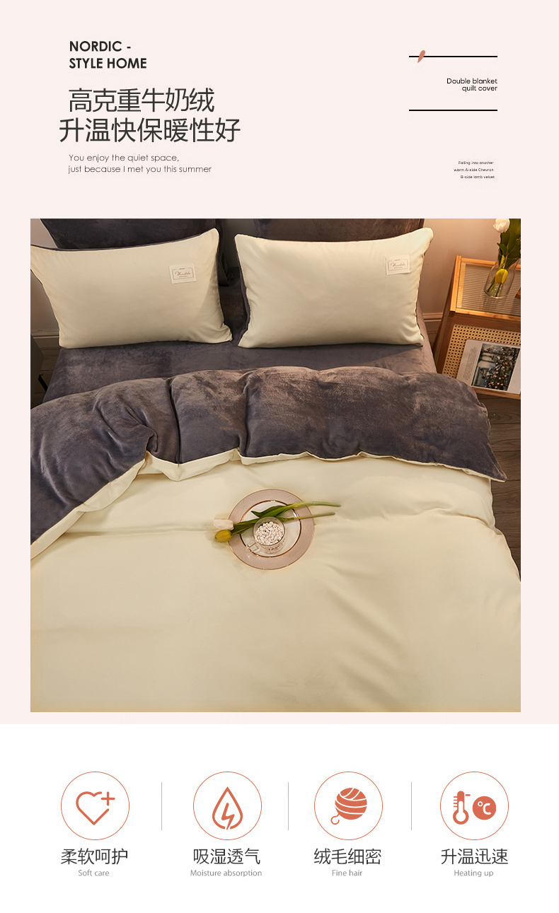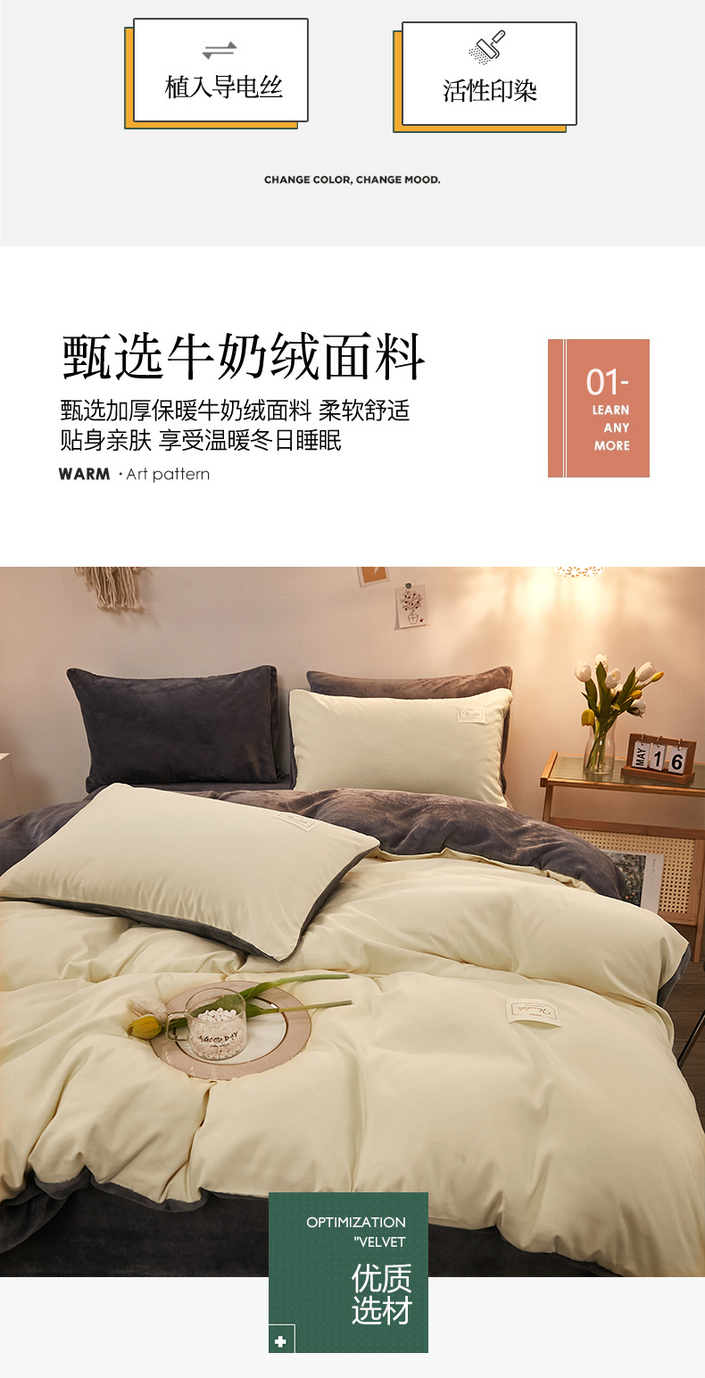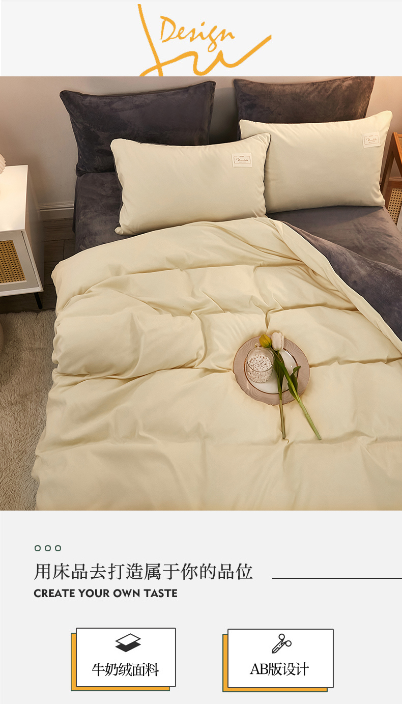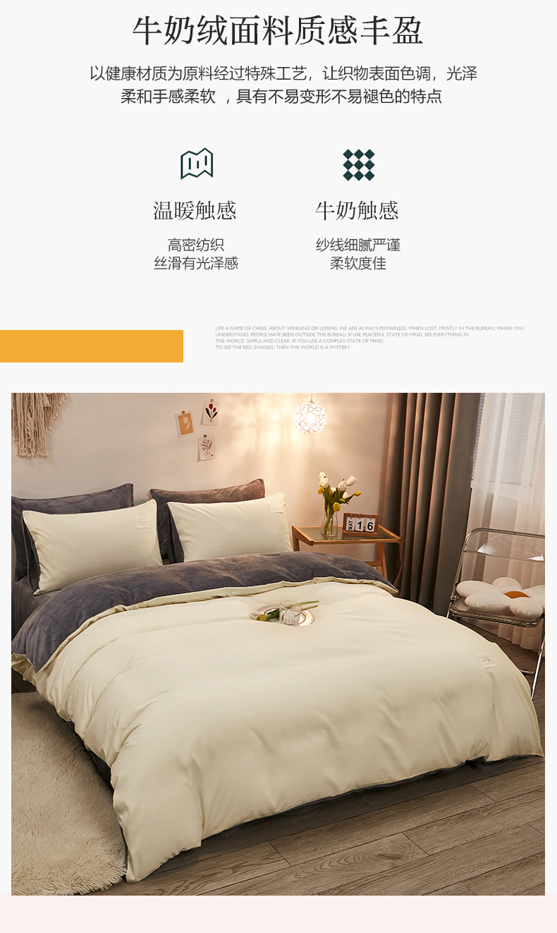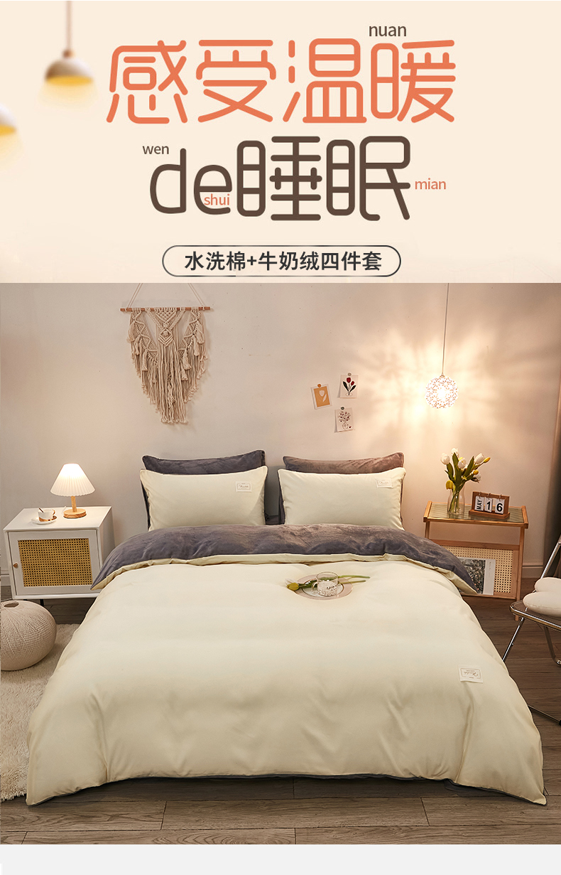当前位置: 91家纺网 > 商品网购 > 床品套件 > 四件套 > 牛奶绒四件套 > 啊雅家居 2026新款水洗棉牛奶绒三件套四件套 暖黄加牛奶绒