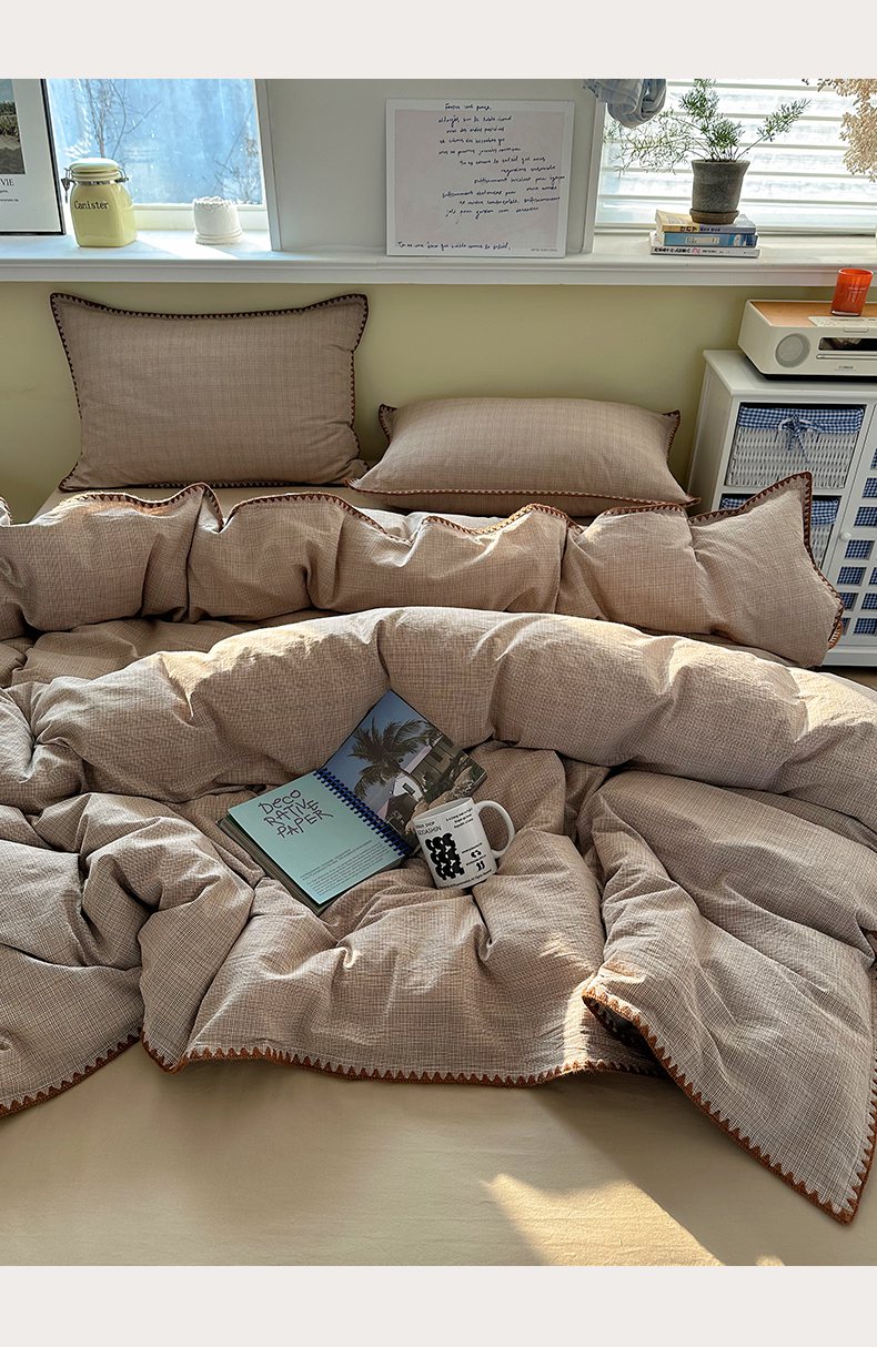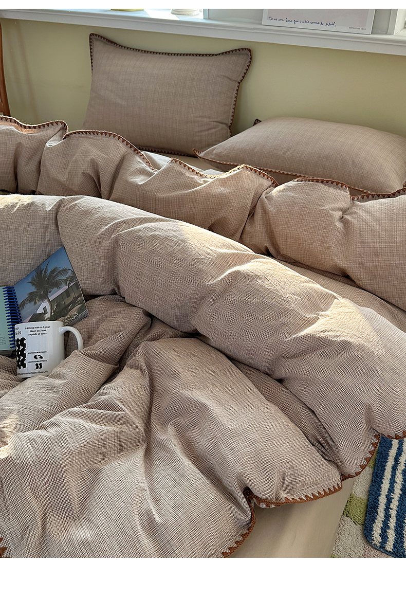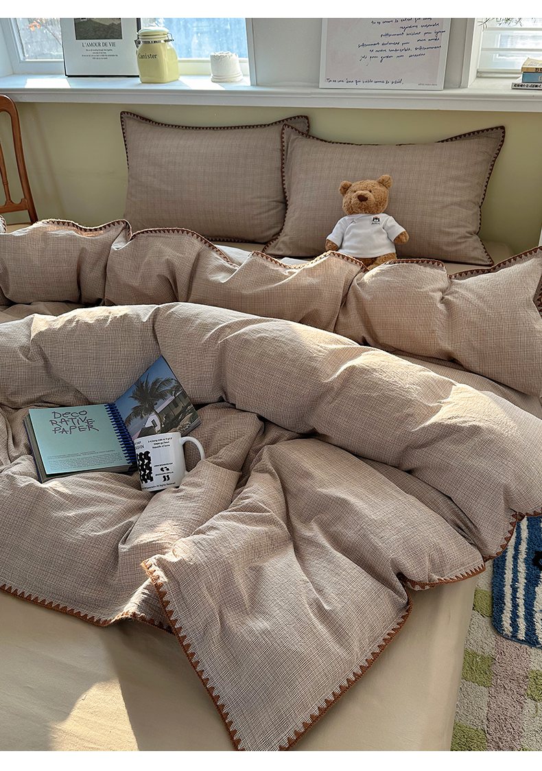 当前位置: 91家纺网 > 商品网购 > 床品套件 > 四件套 > 全棉普通四件套 > XIWEN-希文家纺 2026新款40支全棉色织水洗棉贝壳边四件套 米菲-卡其