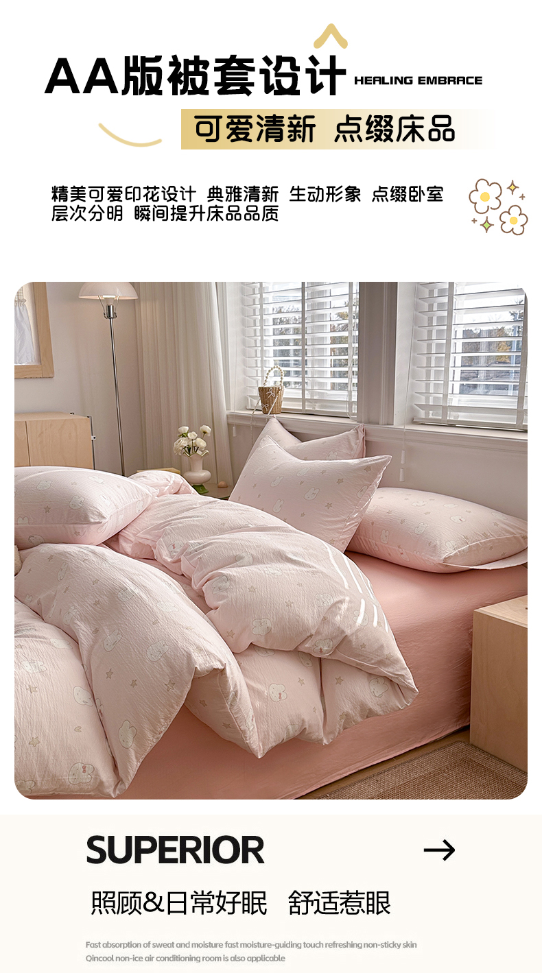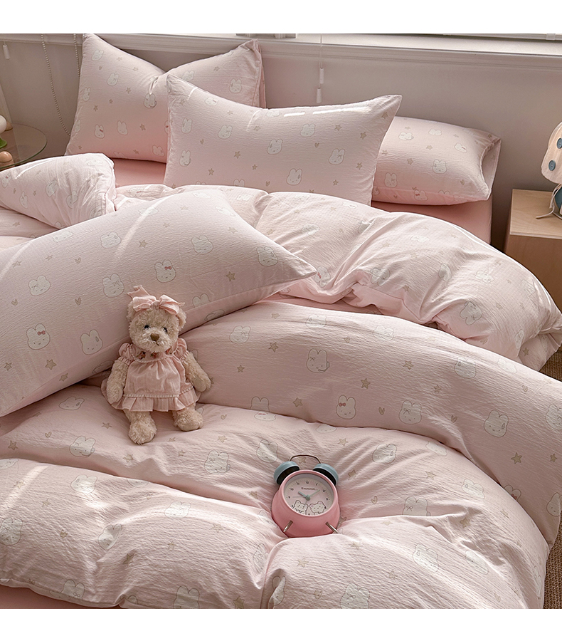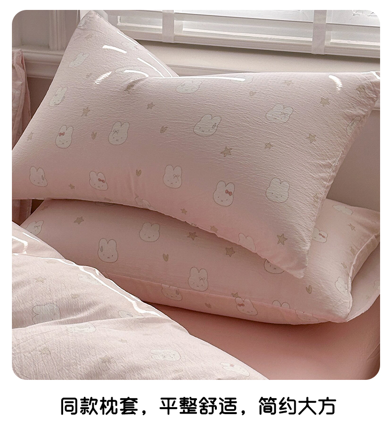 商品名称:多品家纺 2026新款奶呼呼超柔云感双层纱系列单被套 桃气兔兔