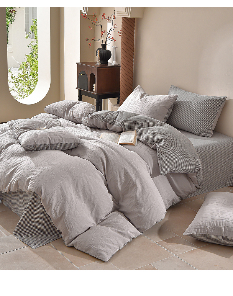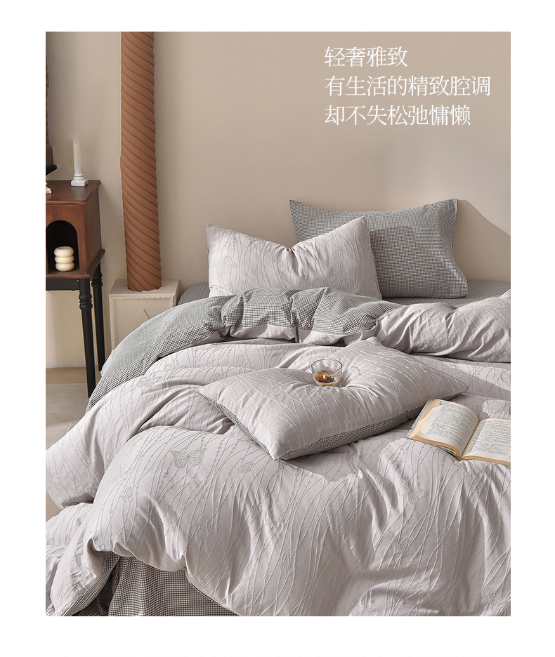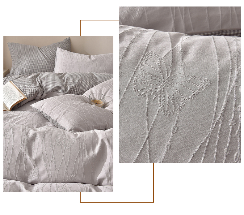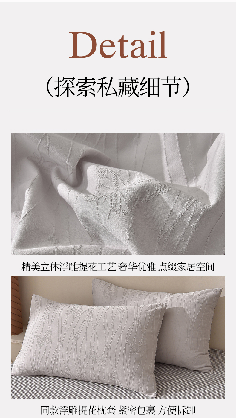 炫拼家纺 2026新款A类60支水洗棉立体浮雕提花全棉四件套-幻蝶系列 幻蝶-星空灰