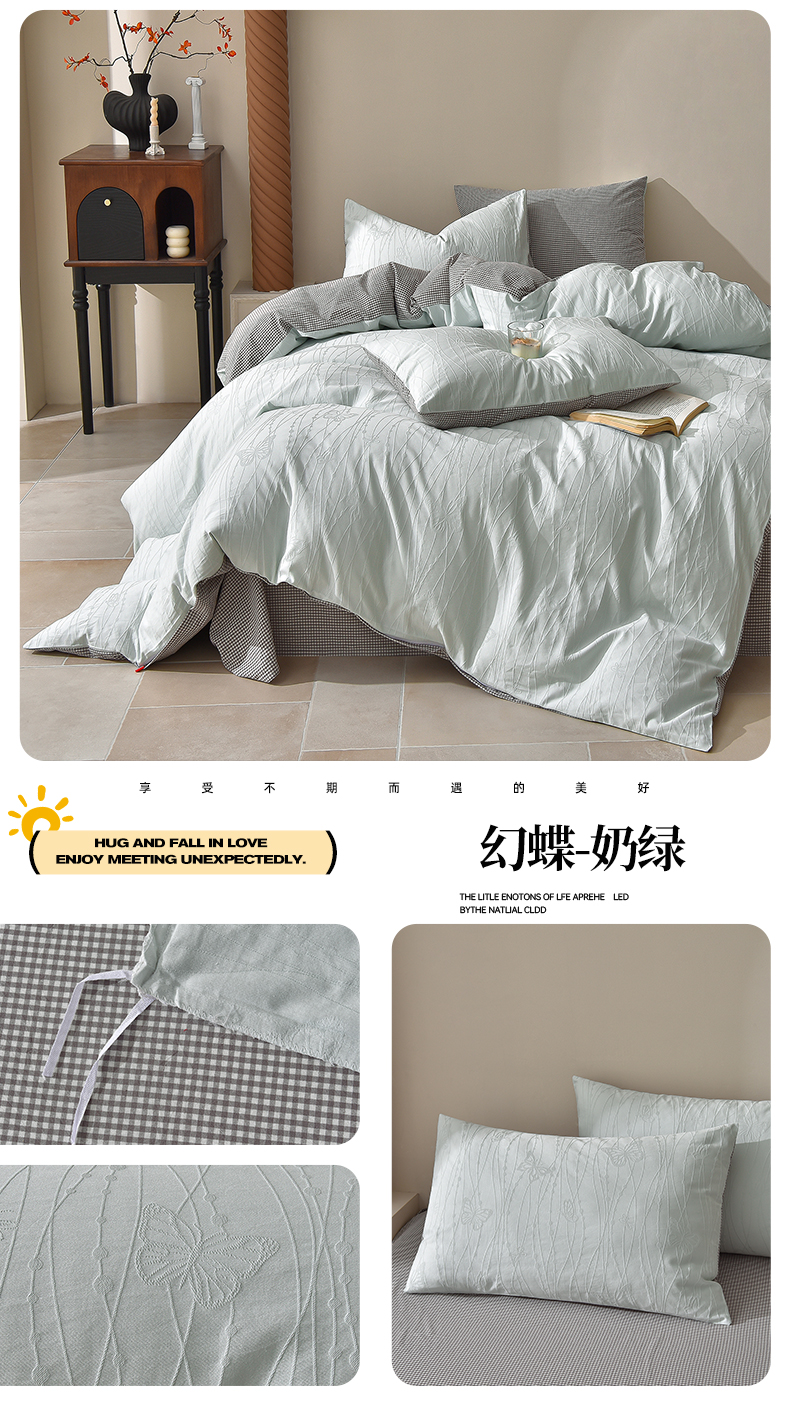(总)炫拼家纺 2026新款A类60支水洗棉立体浮雕提花全棉四件套-幻蝶系列,幻蝶-绿光森林,幻蝶-浪漫粉,幻蝶-梦幻紫,幻蝶-奶绿,幻蝶-星空灰,幻蝶-中国红