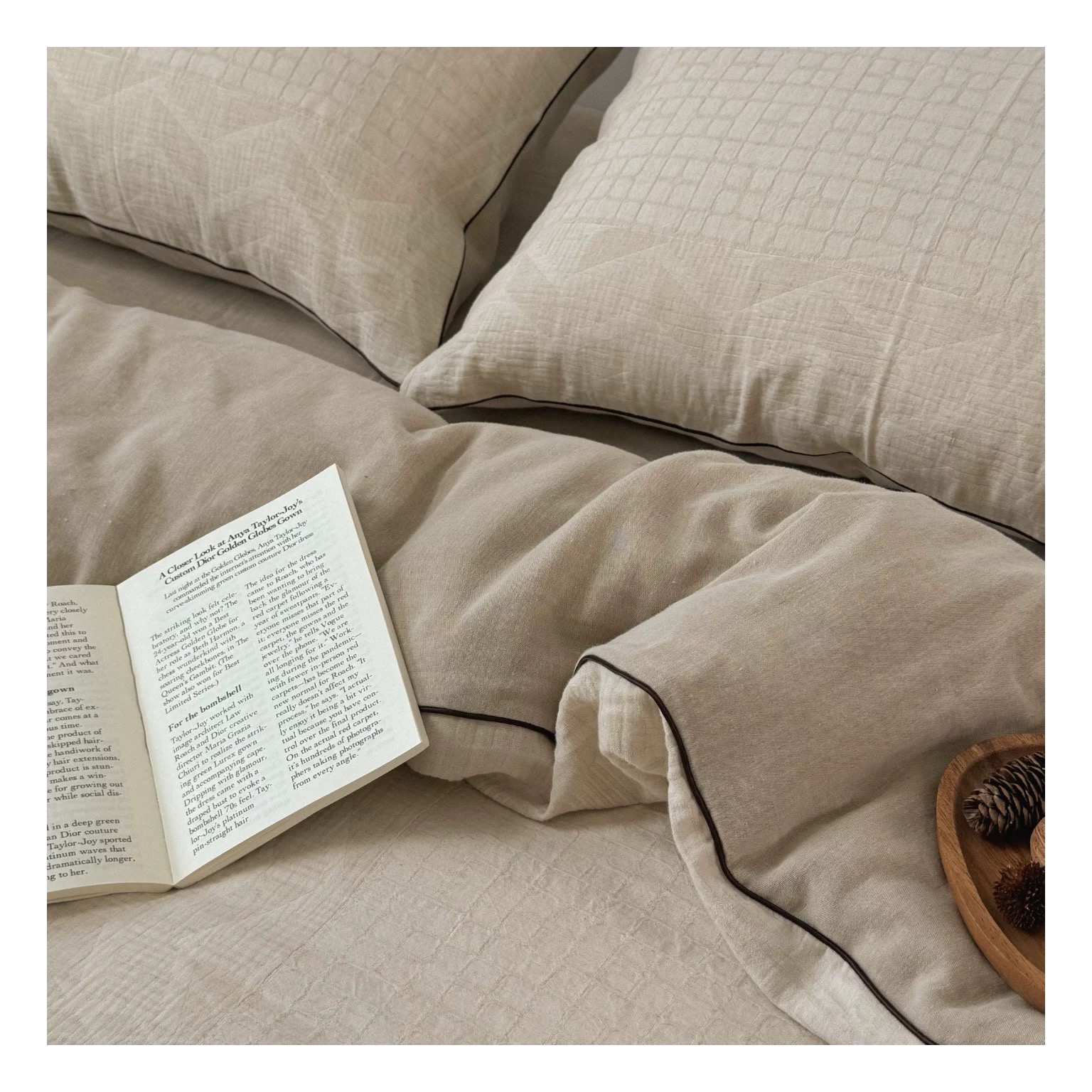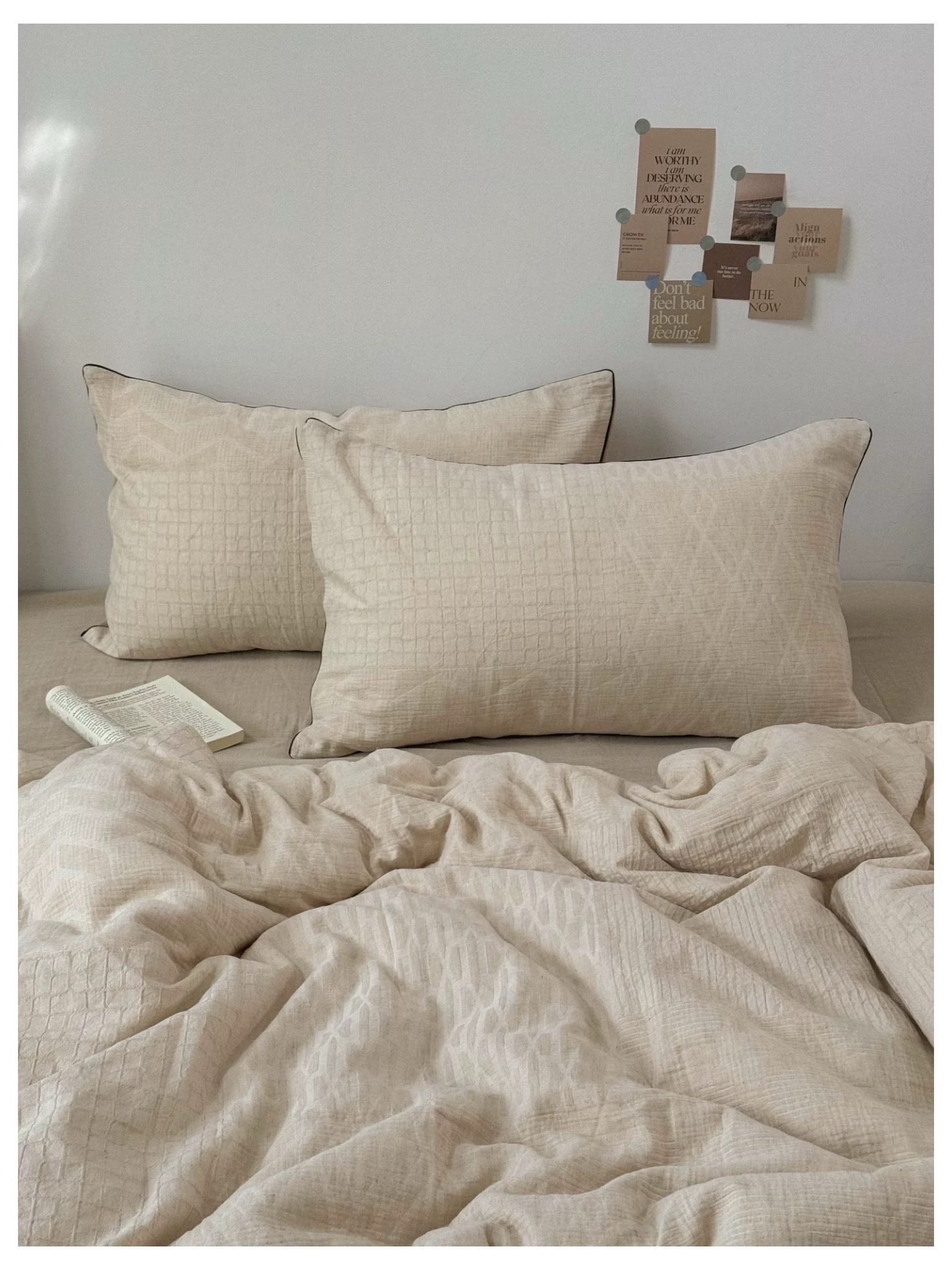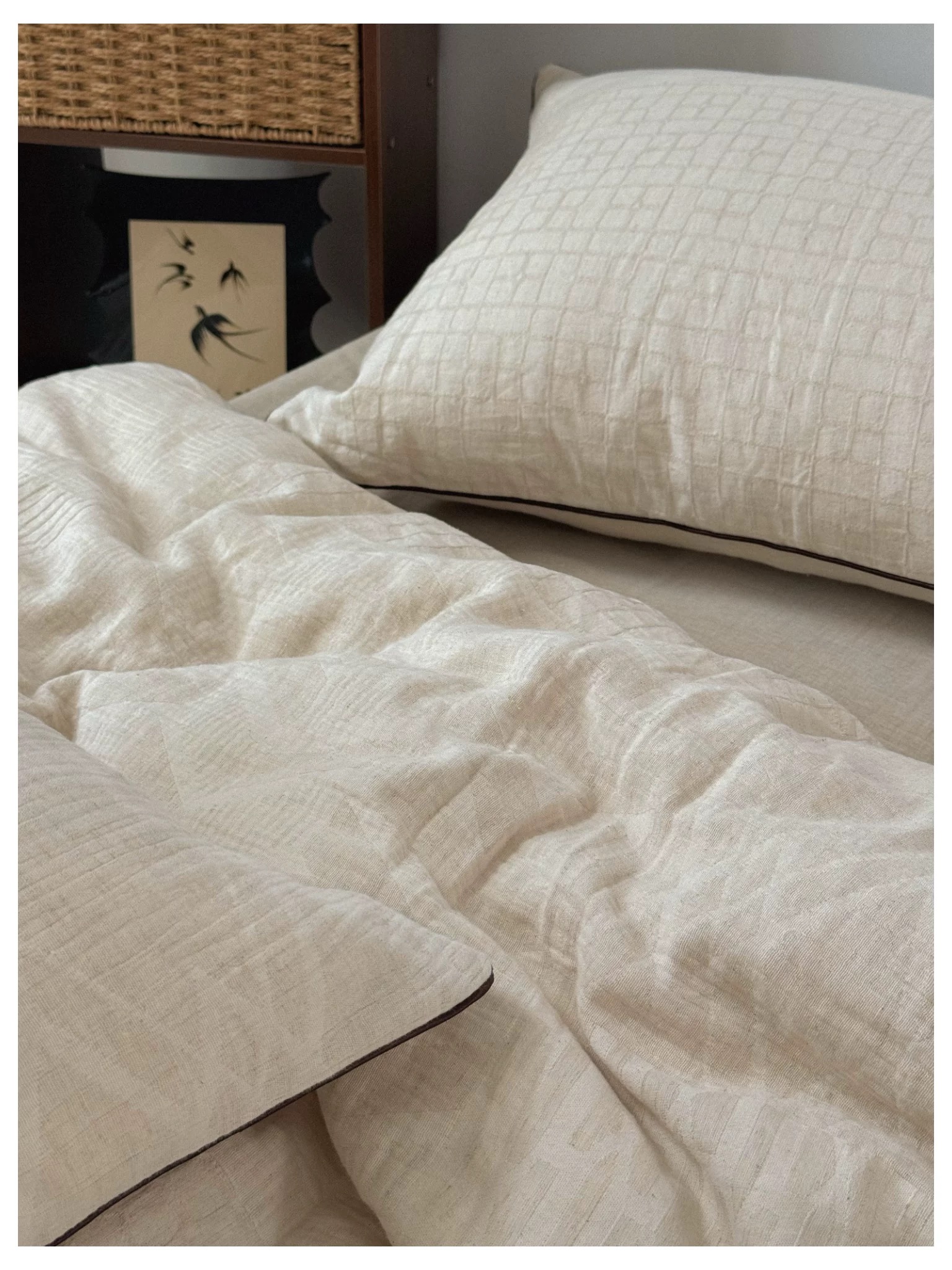 商品名称:(总)双层纱家居 2025新款AB版A版棉麻B版全棉纯棉色织提花双层纱棉麻四件套20%麻-马吉拉