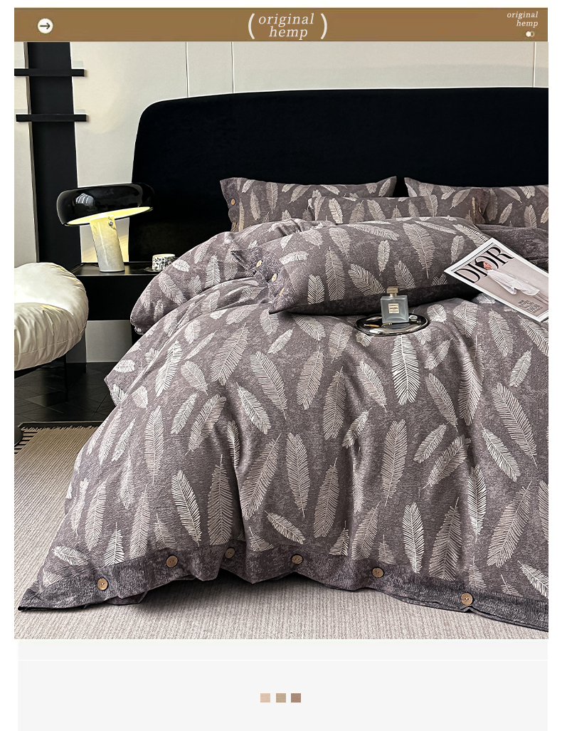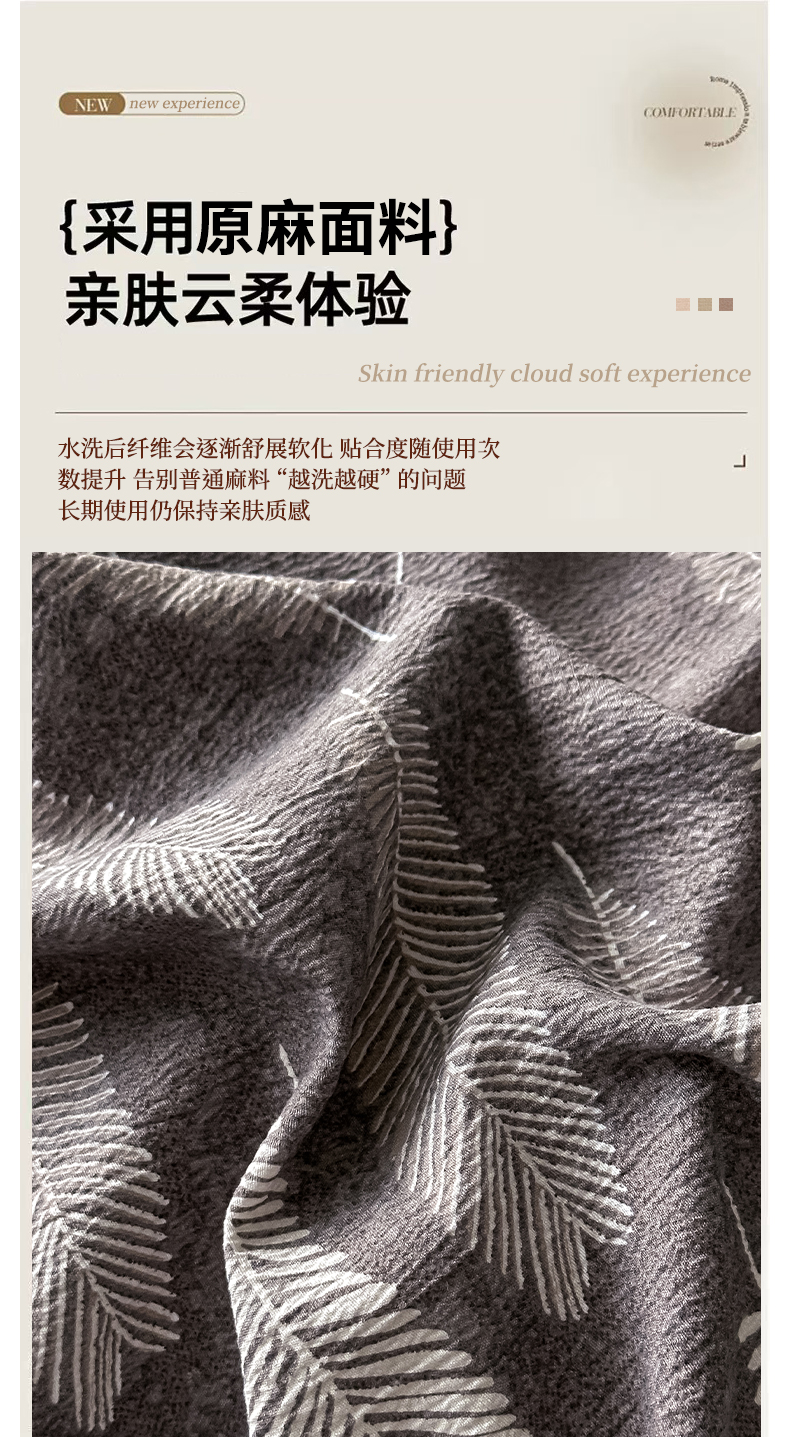 当前位置: 91家纺网 > 商品网购 > 床品套件 > 四件套 > 其它四件套 > 爱彼家纺 2026新款四季款纽扣款轻奢原麻四件套-套件系列一 轻奢原麻-凤尾花语