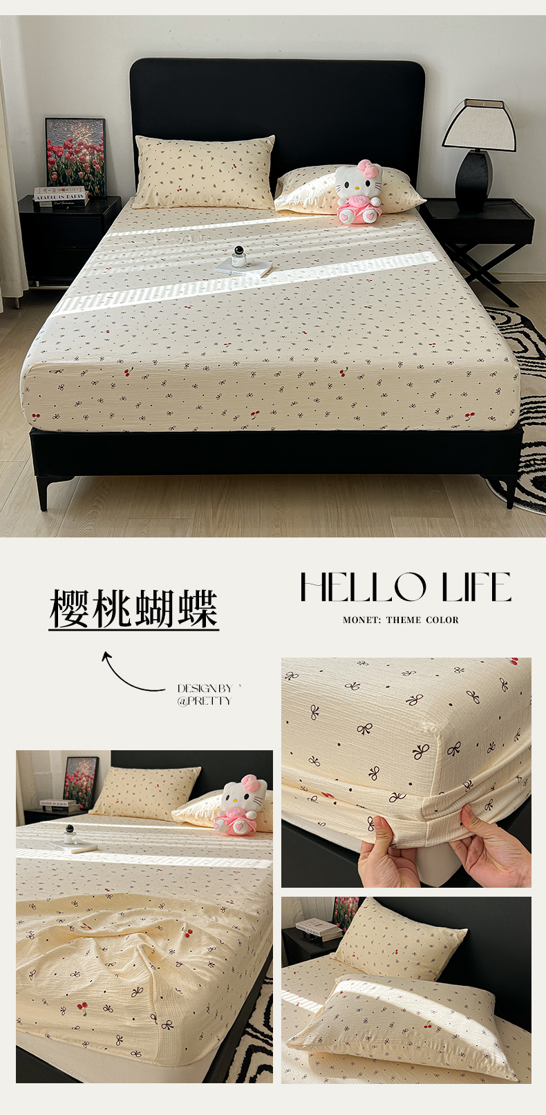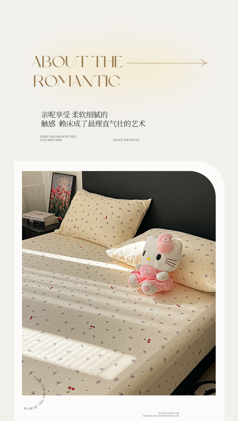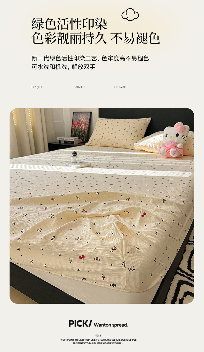 • 91家纺网 家纺一手货源 找家纺 韩巢家纺 2026新款三层纱单床笠热销款防滑床笠单件 樱桃蝴蝶