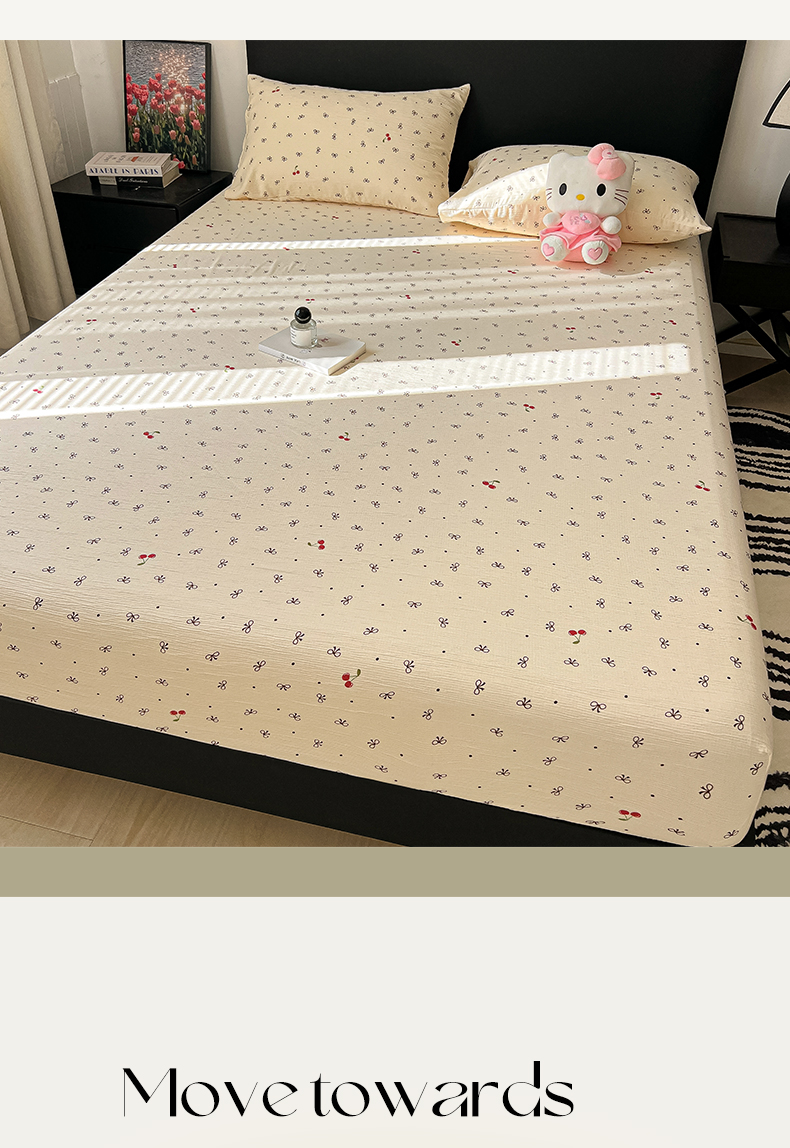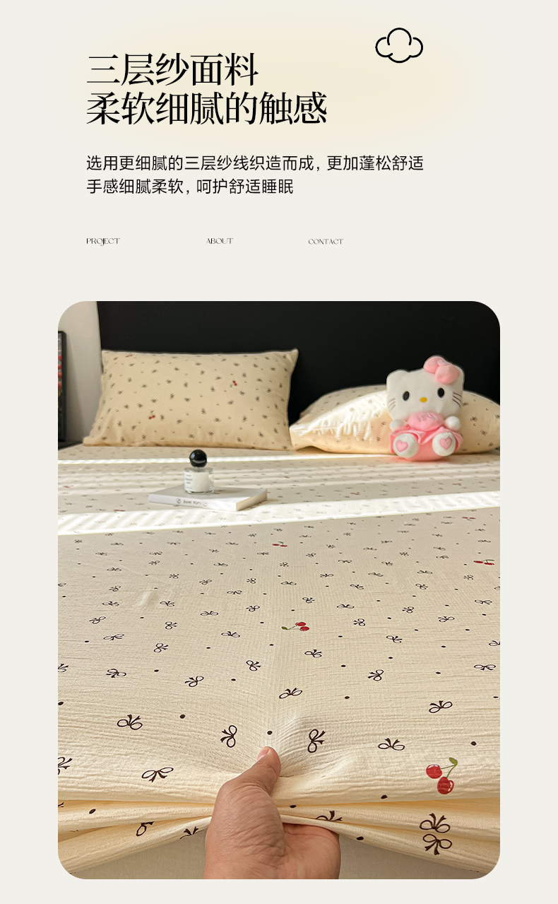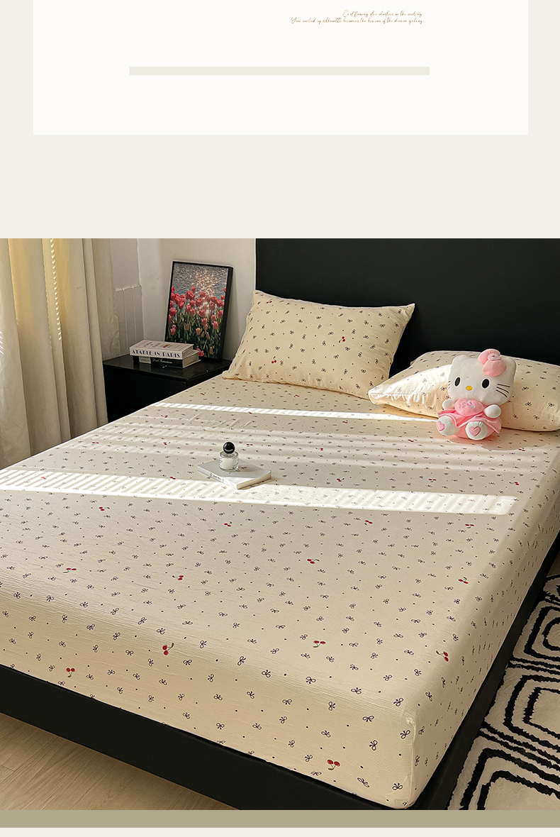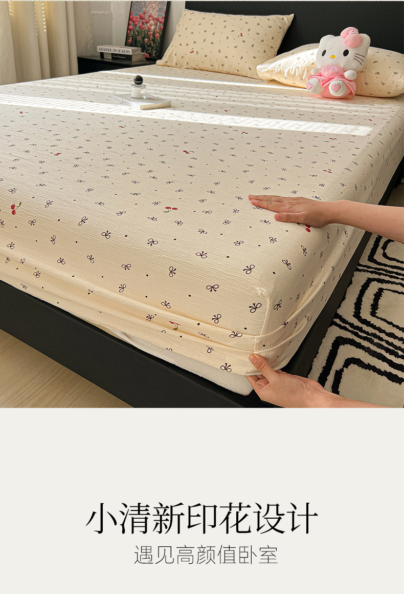 韩巢家纺 2026新款三层纱单床笠热销款防滑床笠单件 樱桃蝴蝶
