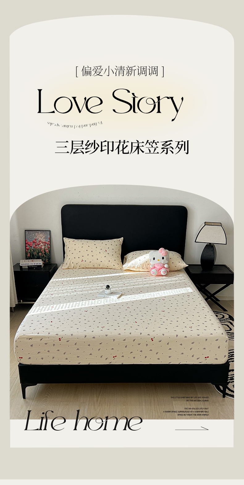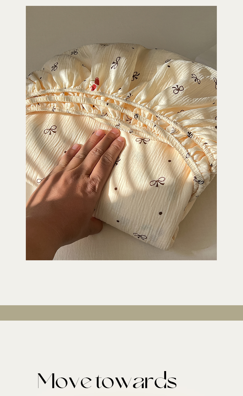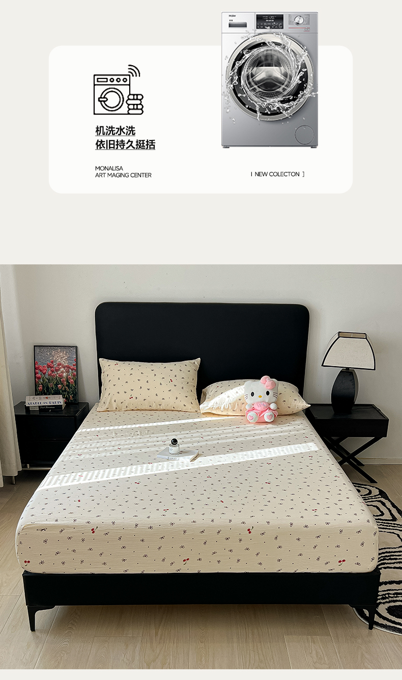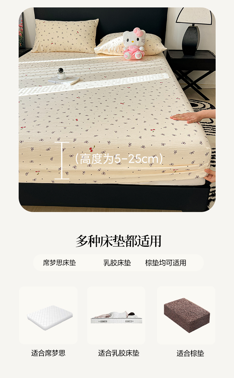 韩巢家纺 2026新款三层纱单床笠热销款防滑床笠单件 樱桃蝴蝶