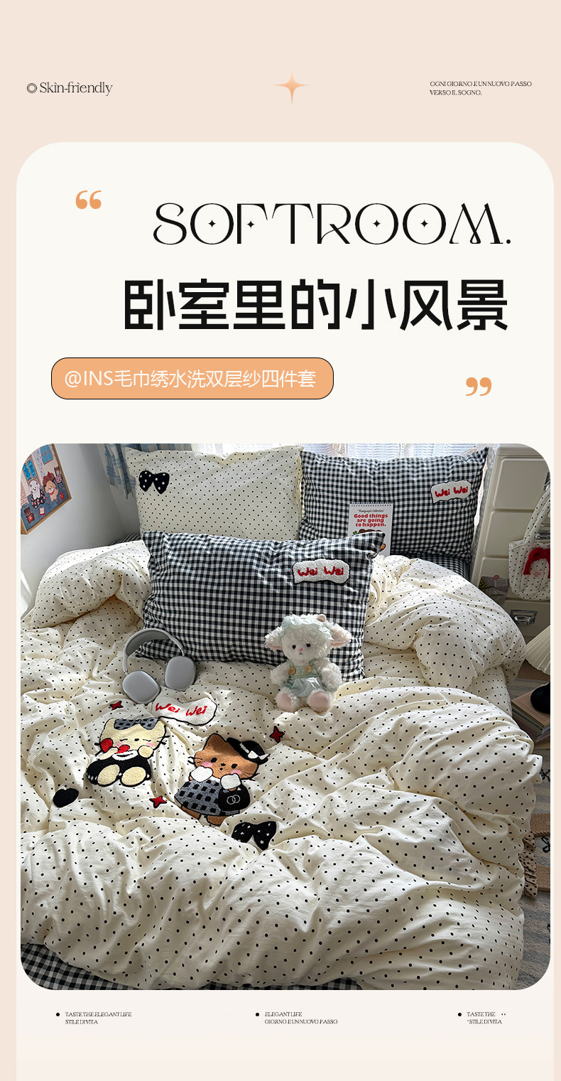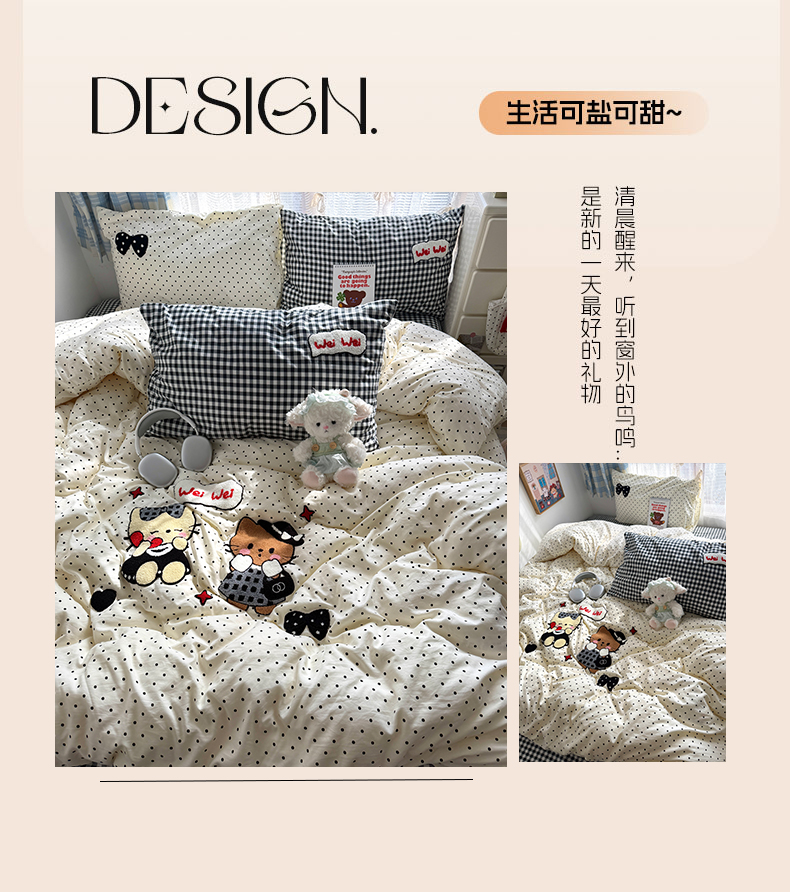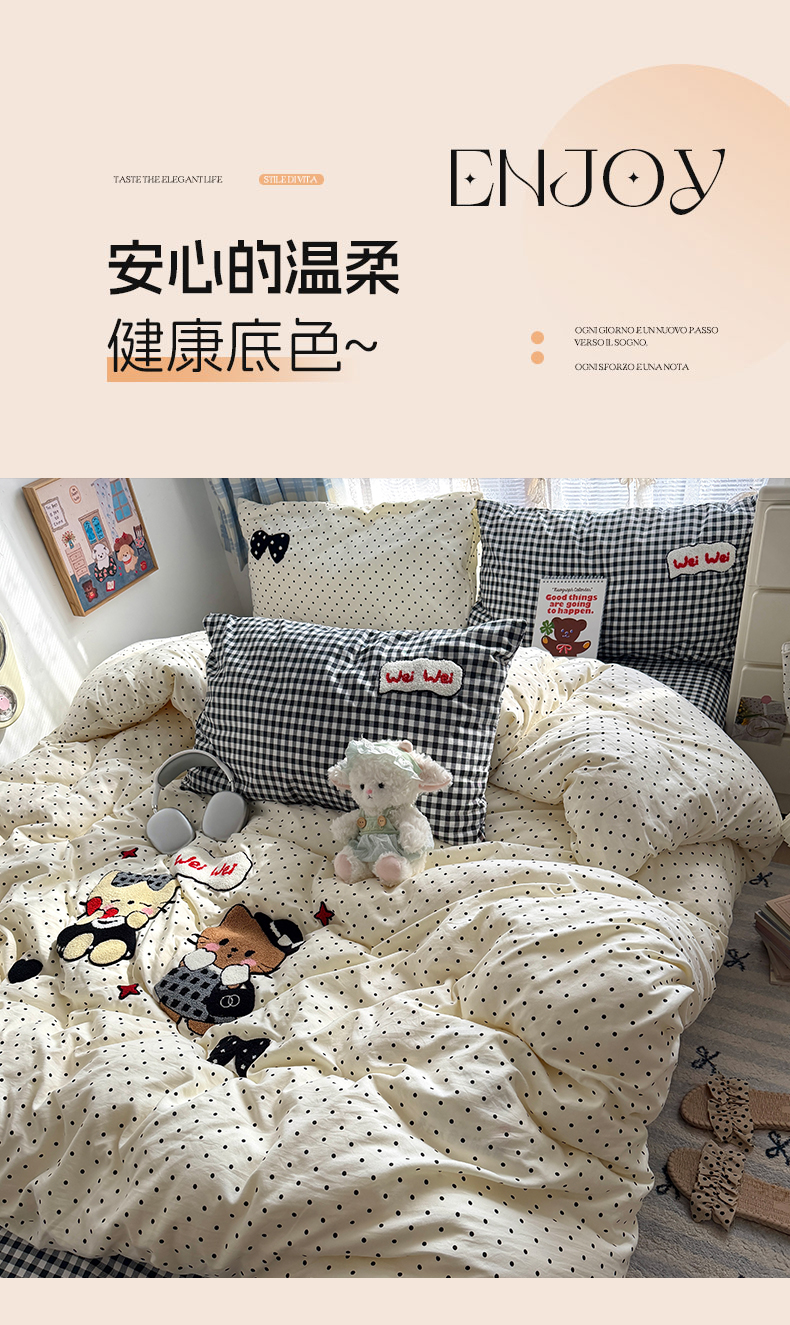 (总)原素 2025软绵绵的双拼印花水洗棉四件套,奶糕小熊,凯特猫格子铺,复古小熊,复古腊肠狗,动物狂欢会,萌宠备忘录,萌胖凯特猫,木马凯特猫,碎花熊熊,彩色爱心,星星月亮,碎花奶猫,韩系熊熊子,爱吃懒猫,爱笑的猫咪,彩格狗狗,丛林小猫,丛林小兔,呆萌女孩,单纯萌兔,格子小腊肠,蝴蝶结小熊,话痨小熊,科技萌宠,蓝格萌萌猫,萌狗格子铺,巧克力饼干,俏皮腊肠狗,碎花腊肠狗,田园公主,兔兔格子铺,羞羞兔兔,樱桃小可爱,游乐园萌萌兔,小熊包包