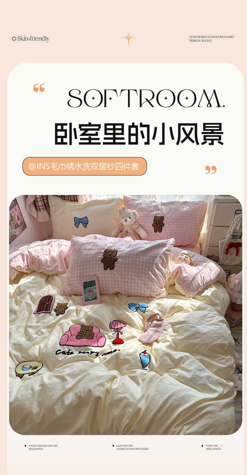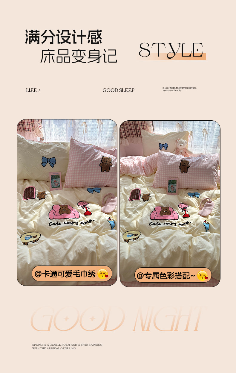 当前位置: 91家纺网 > 商品网购 > 床品套件 > 四件套 > 毛巾绣四件套 > 原素 2026新款新春卡哇伊毛巾绣四件套 沙发抱抱熊