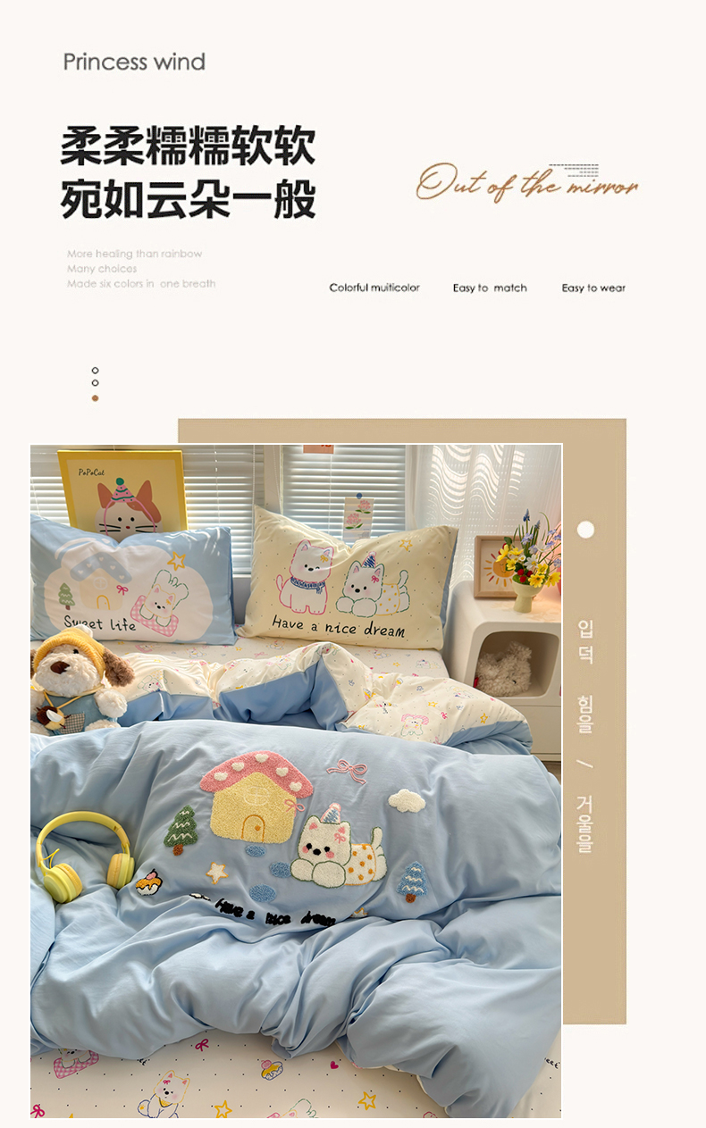 当前位置: 91家纺网 > 商品网购 > 床品套件 > 四件套 > 其它四件套 > 一霖家纺 2026新款云朵棉毛巾绣小清新猫咪系列四件套 蜡笔星星