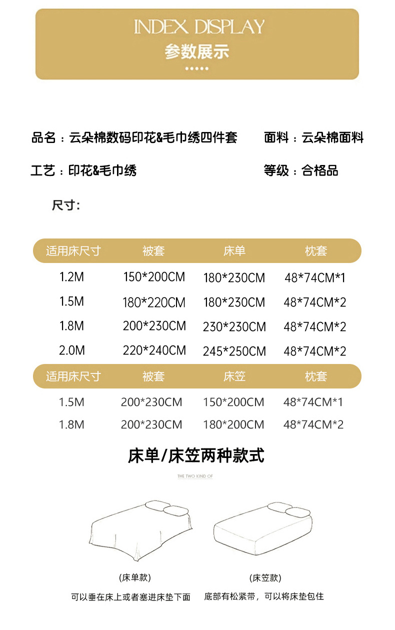 【床笠款】1.8四件套-被套200x230 | ¥65.00 |