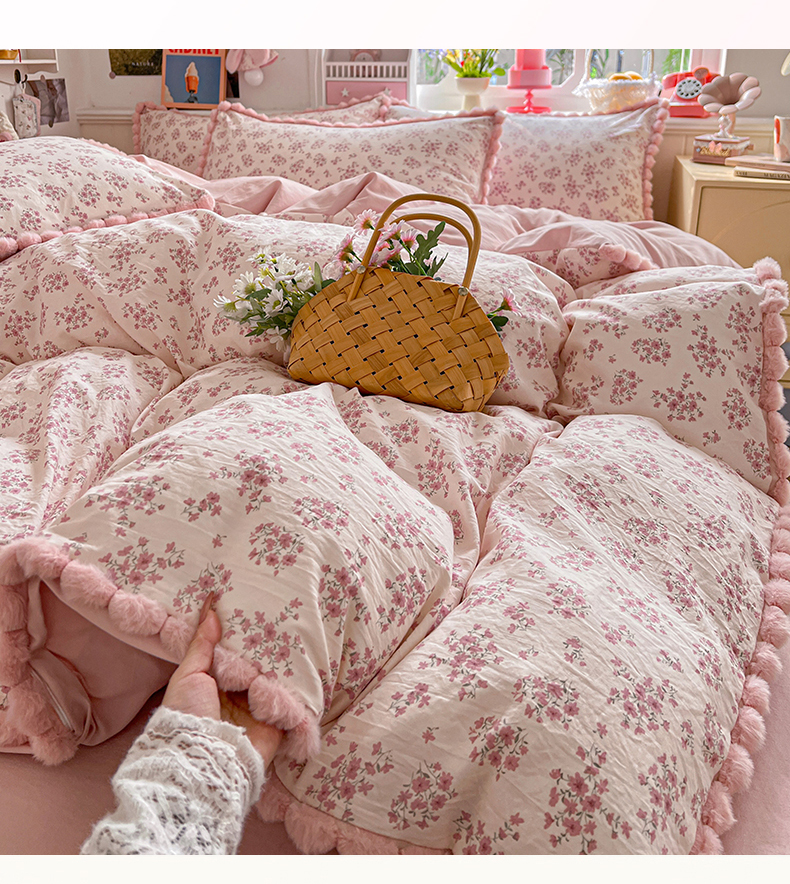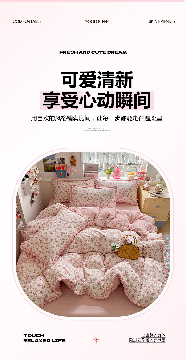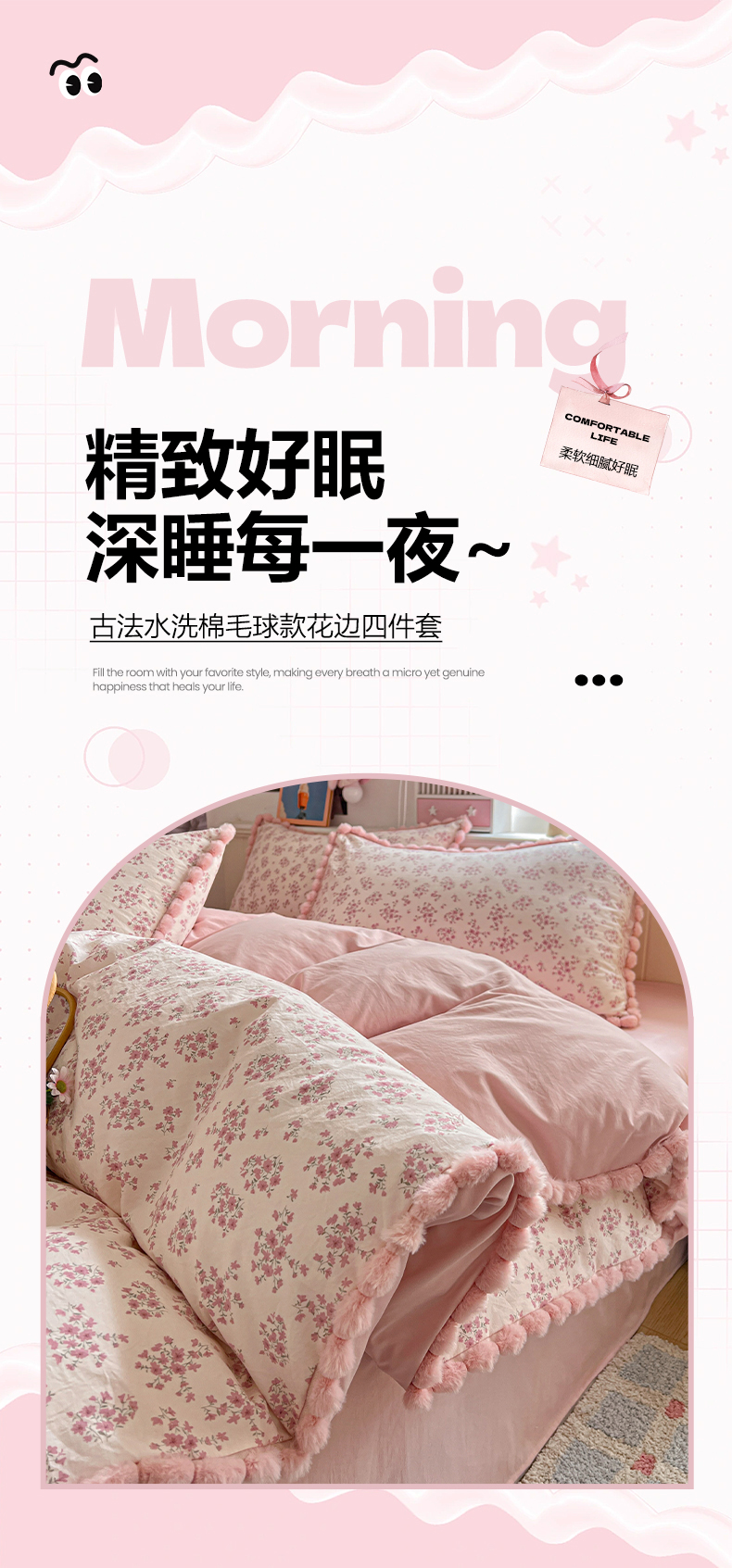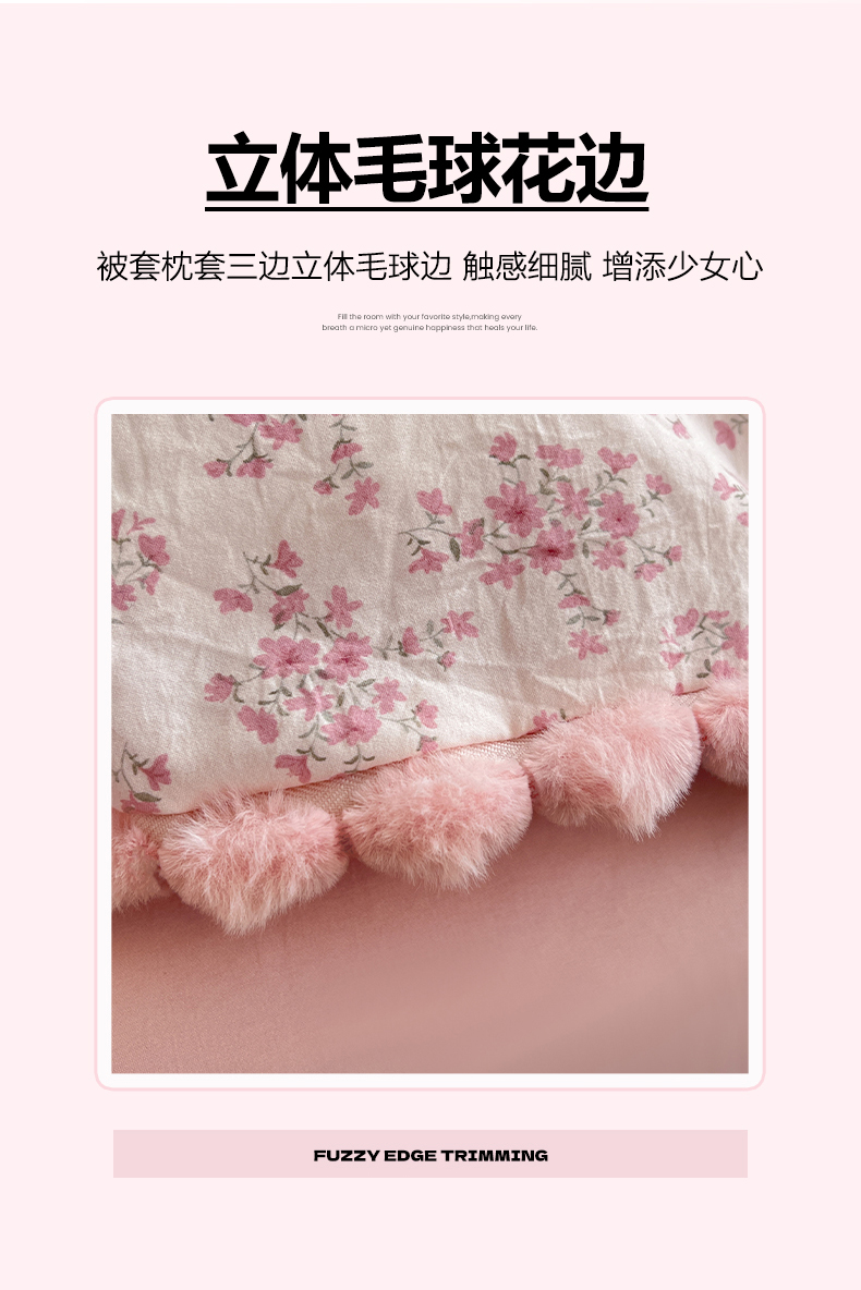 当前位置: 91家纺网 > 商品网购 > 床品套件 > 四件套 > 化纤普通四件套 > 鑫利来家纺 2026新款毛球款四件套古法水洗棉韩式法式花边四件套被套学生床单三件套 毛球款-七分甜