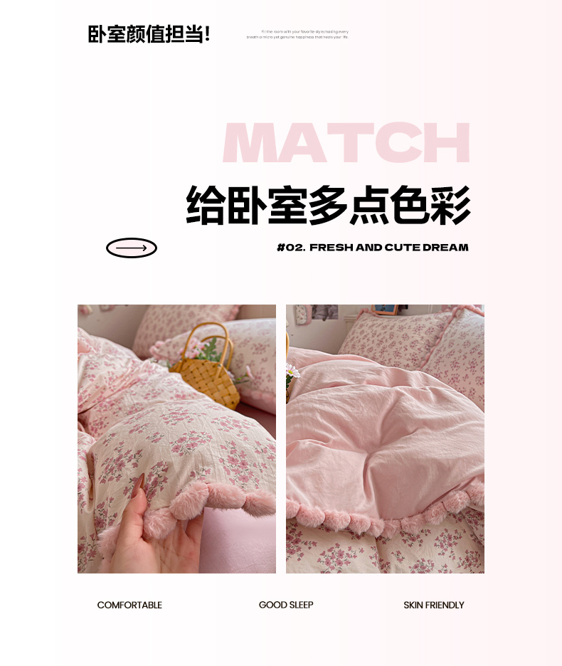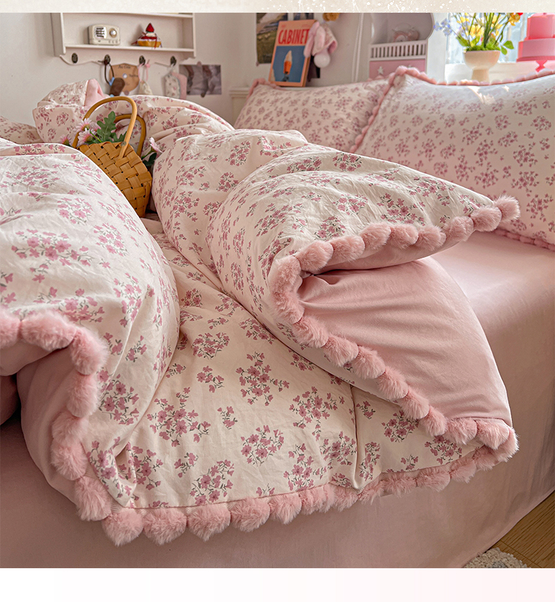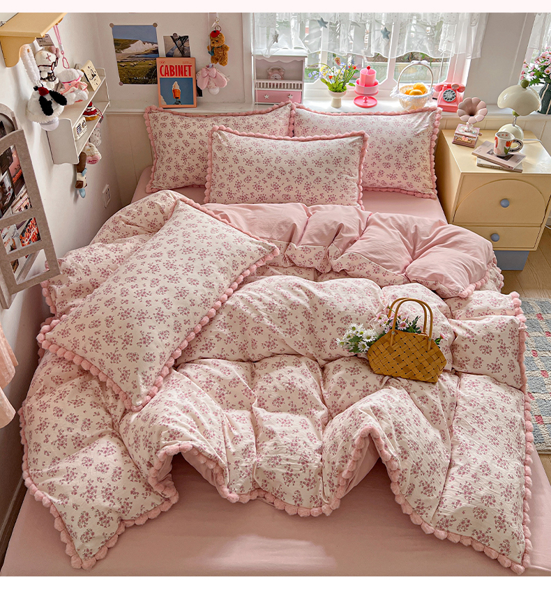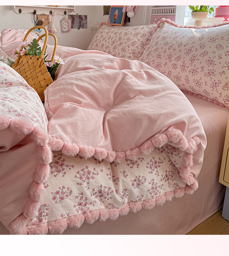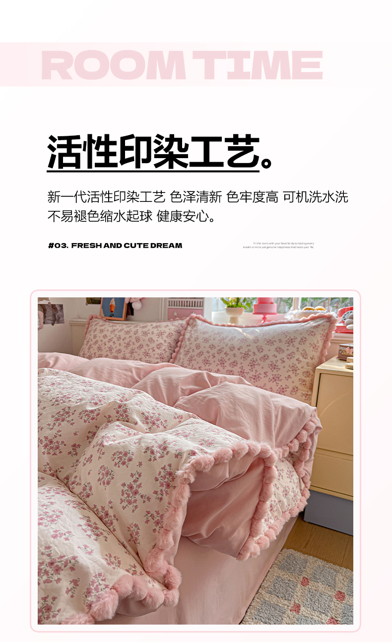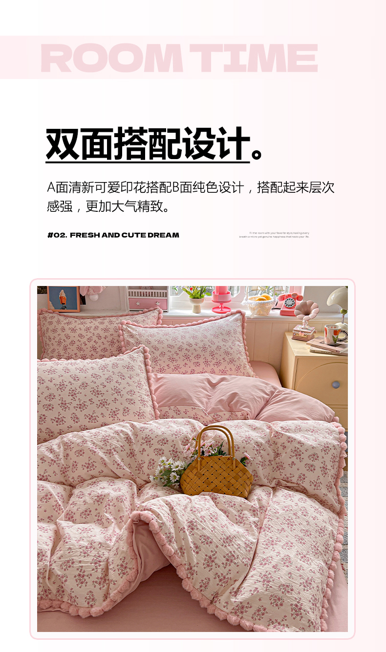 当前位置: 91家纺网 > 商品网购 > 床品套件 > 四件套 > 化纤普通四件套 > 鑫利来家纺 2026新款毛球款四件套古法水洗棉韩式法式花边四件套被套学生床单三件套 毛球款-七分甜