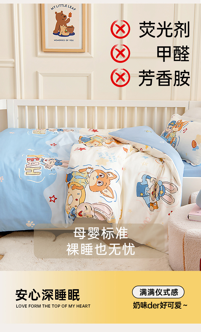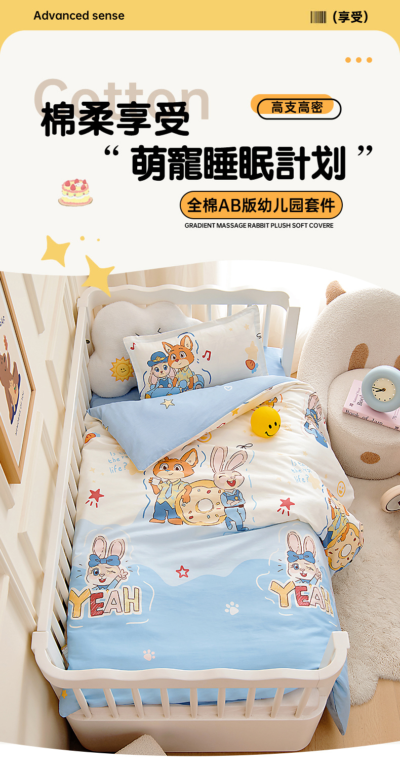 当前位置: 91家纺网 > 商品网购 > 床品套件 > 四件套 > 其它四件套 > 芭伯妮 2026新款全棉AB版幼儿园三件套宝宝午睡被子六件套儿童被套多件套(第一批)萌趣cp