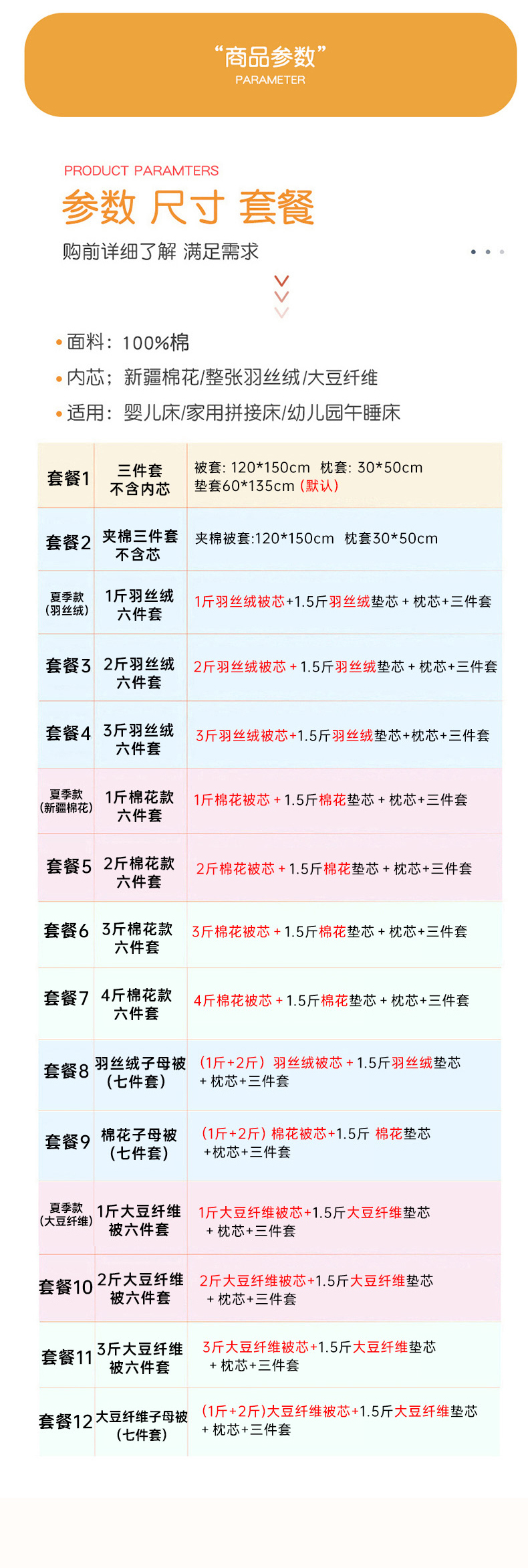 3斤整张羽丝绒六件套(夹棉款) | ¥105.00 |