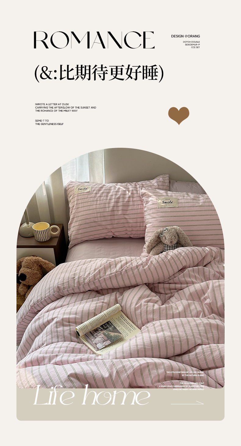 当前位置: 91家纺网 > 商品网购 > 床品套件 > 四件套 > 全棉普通四件套 > 艾咪-Amy ntmy 2026春夏新款布标款全棉纯棉色织水洗棉四件套-告白 告白-粉条