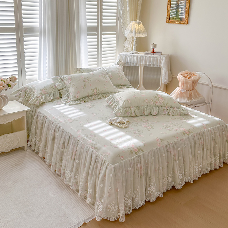 (总)瑞宝 2025新款全棉花边床裙三件套系列-落日甜茶,落日甜茶-梦幻玉,落日甜茶-奶油白,落日甜茶-青柠绿,落日甜茶-甜紫