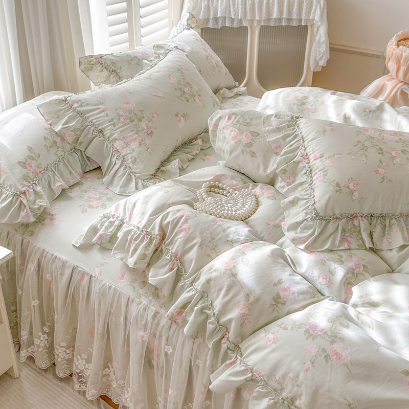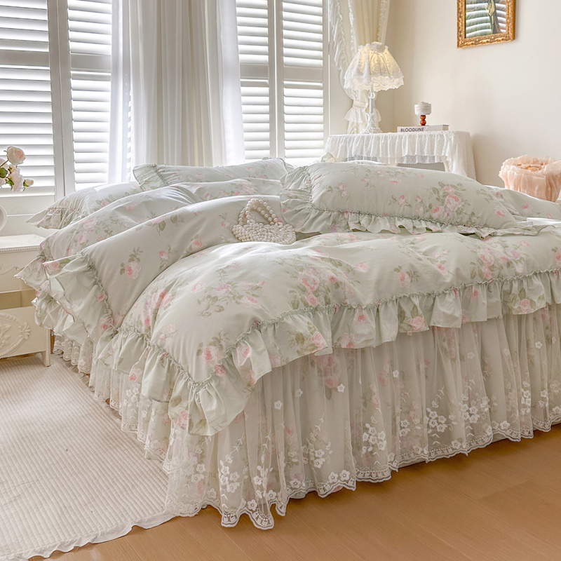 (总)瑞宝 2025新款全棉花边床裙四件套系列-落日甜茶(控价308起),落日甜茶-梦幻玉,落日甜茶-奶油白,落日甜茶-青柠绿,落日甜茶-甜紫