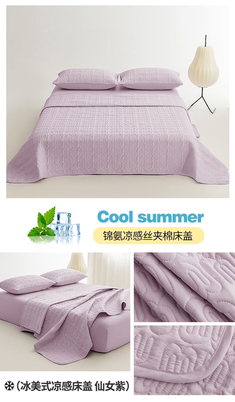 当前位置: 91家纺网 > 商品网购 > 床上用品 > 床盖 > 恩和家纺 2026新款锦氨凉感丝夹棉床盖 冰美式凉感床盖 仙女紫