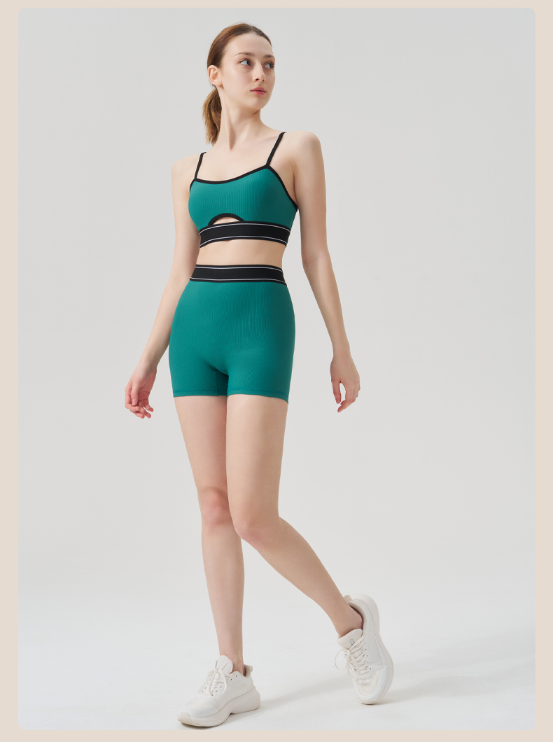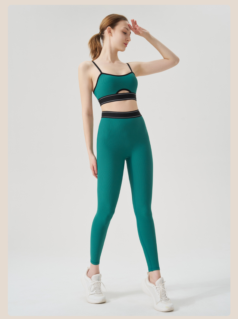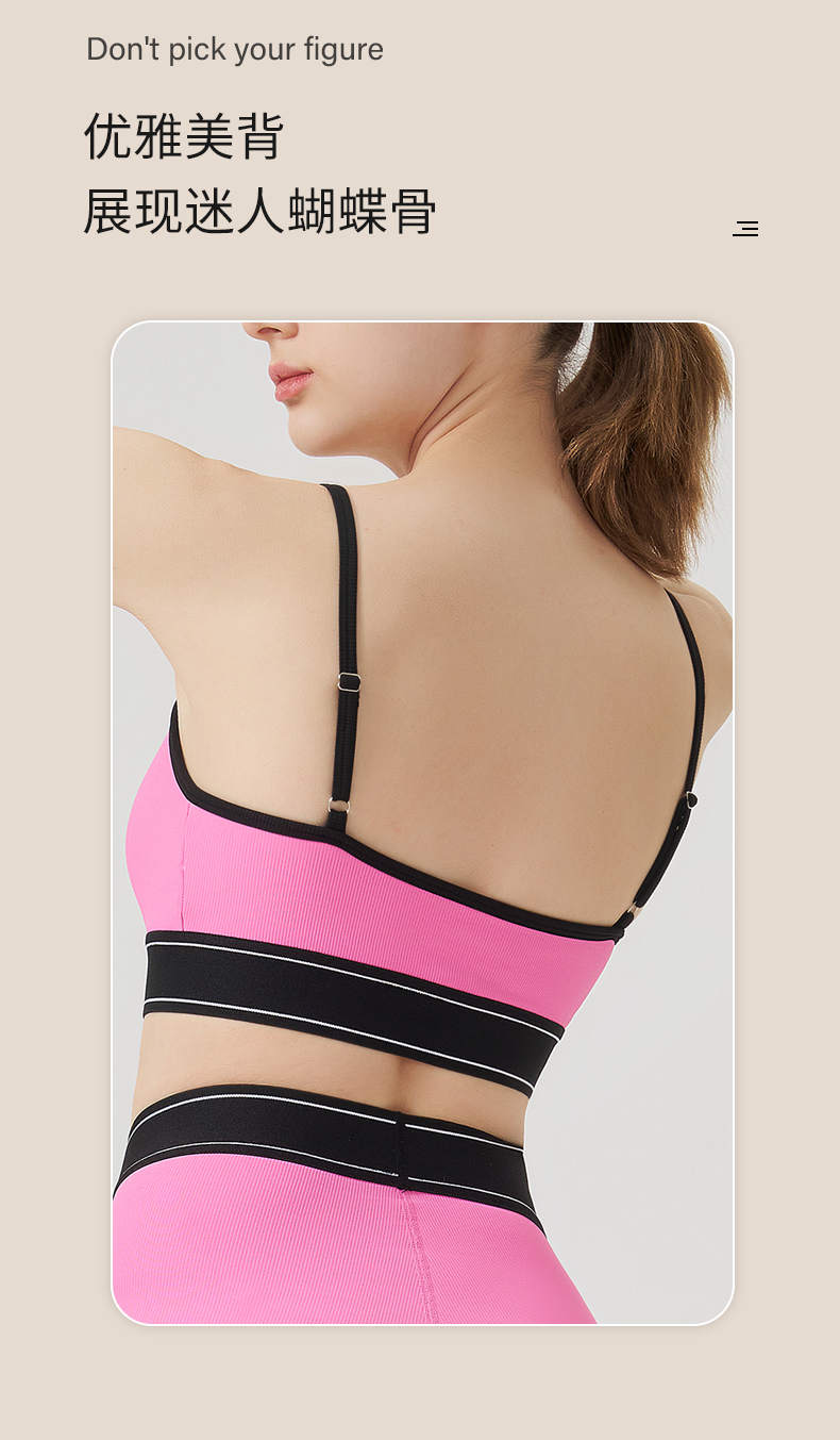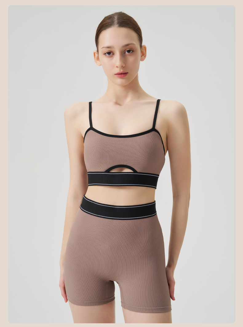 商品名称:(总)沐珩家纺 2026新款跨境运动内衣螺纹瑜伽服套装文胸跑步健身上衣欧美吊带瑜伽服