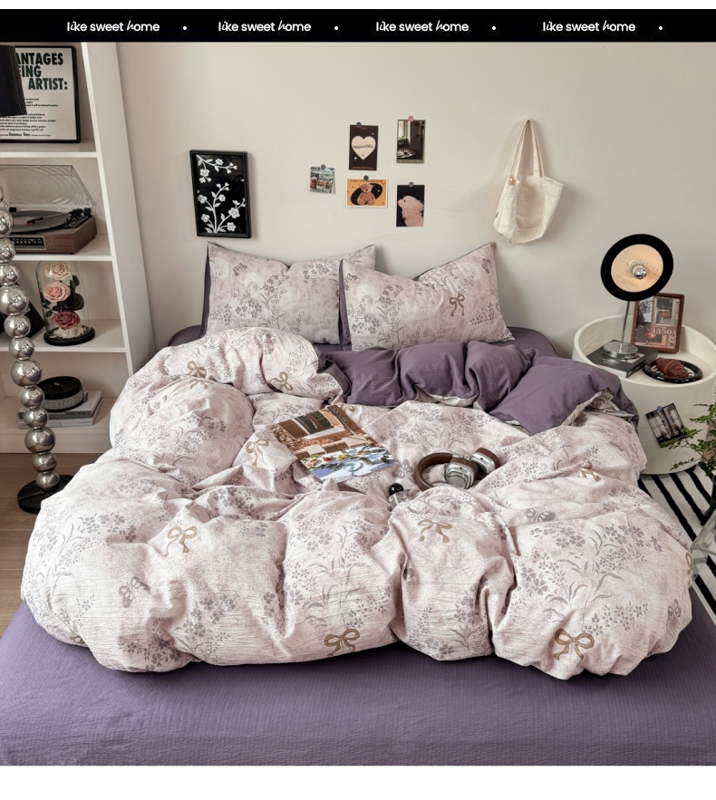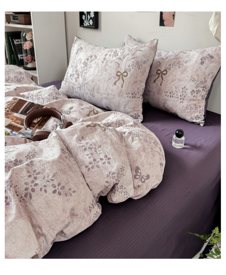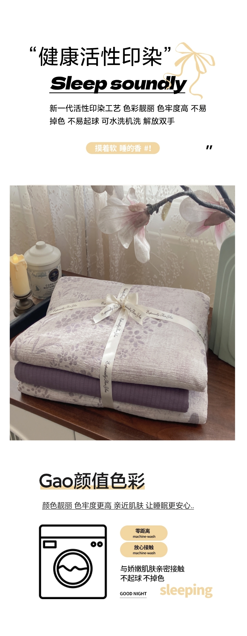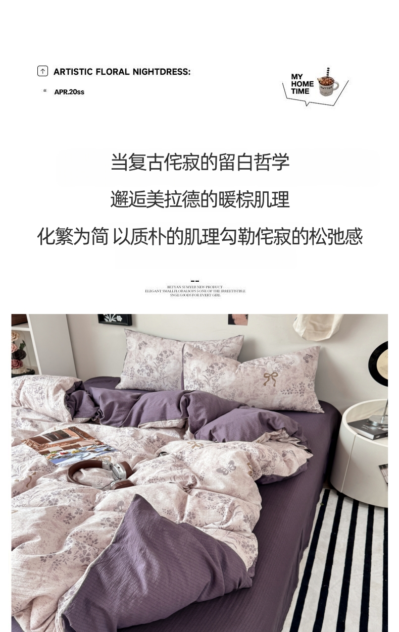 (总)雅阁尔家纺 2026新款复古美拉德风泡芙棉双层纱床单床笠款水洗棉四件套学生宿舍三件套单被套,春风拂梦,马上有钱,花姿,风华若诗,紫萝漫想,青花瓷,素蝶吟,知音咖,绿樱,紫苏