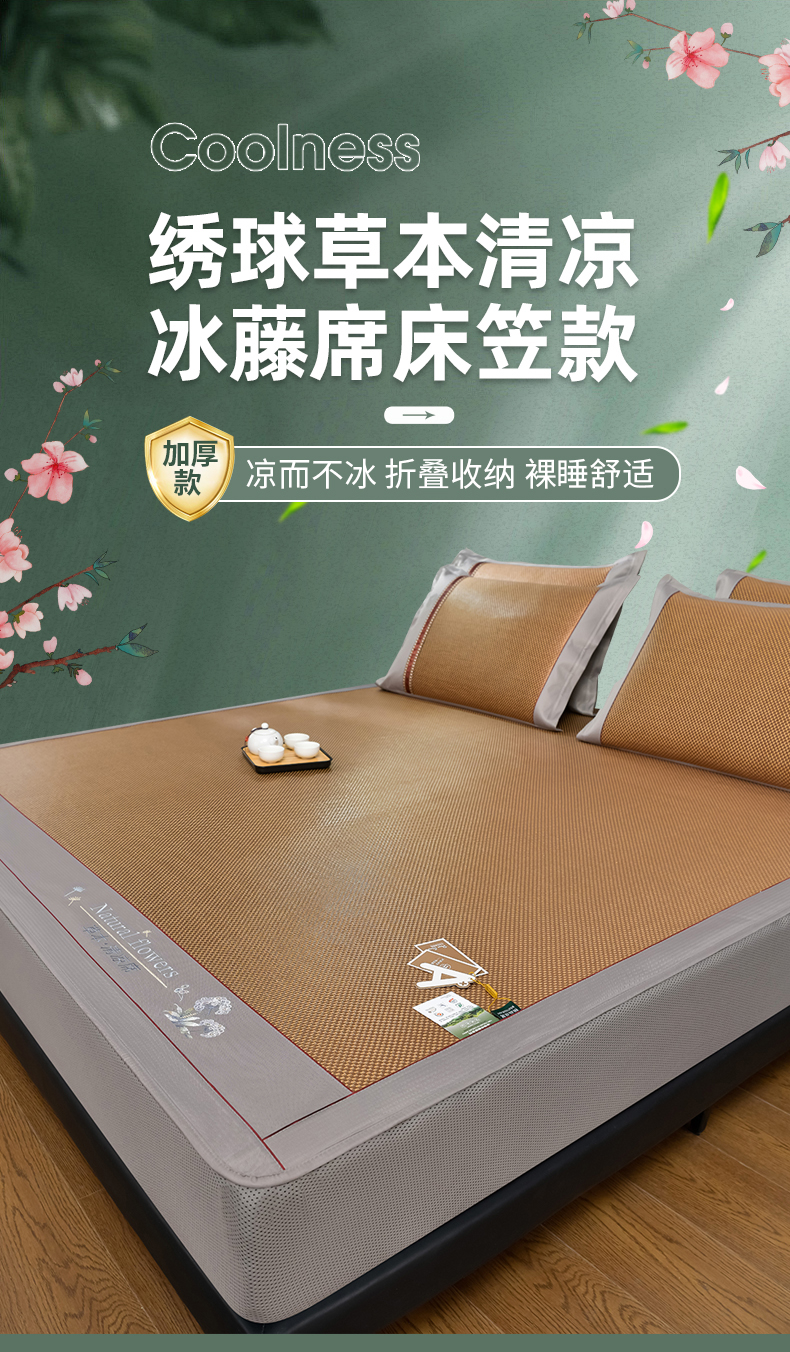 当前位置: 91家纺网 > 商品网购 > 床上用品 > 凉席 > 凉席套件 > 小牛席业 2026新款加厚款-绣球草本清凉冰藤席系列(床笠款)清凉席凉席藤席冰藤席冰丝席草席竹席乳胶席凉感豆豆 加厚款-绣球草本清凉席(床笠款)咖色