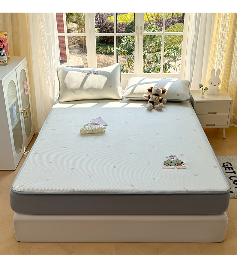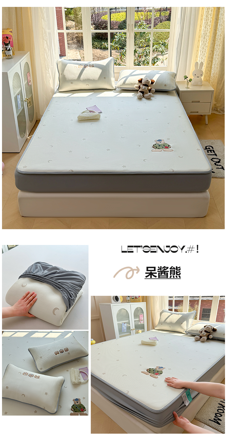 (总)凯罗 2026新款可水洗凉豆豆夏季席子凉席三件套,Hello--熊,爱心小熊--浅粉,敦敦熊--浅粉,敦敦熊--蓝灰,爱心小熊-咖,花儿朵朵--浅粉