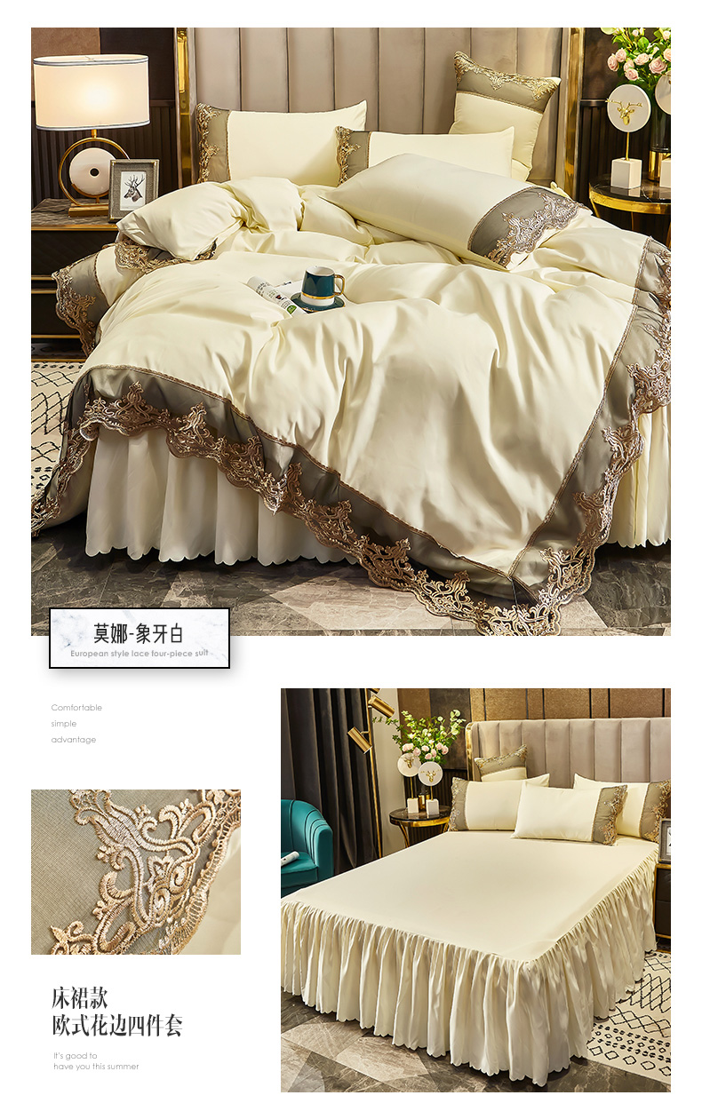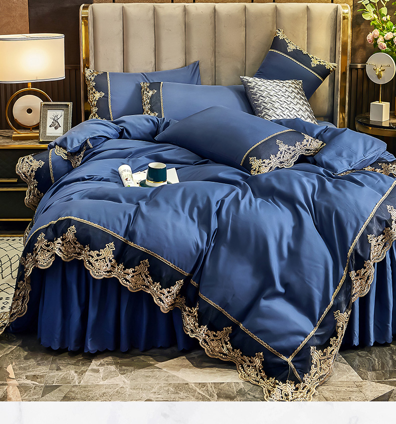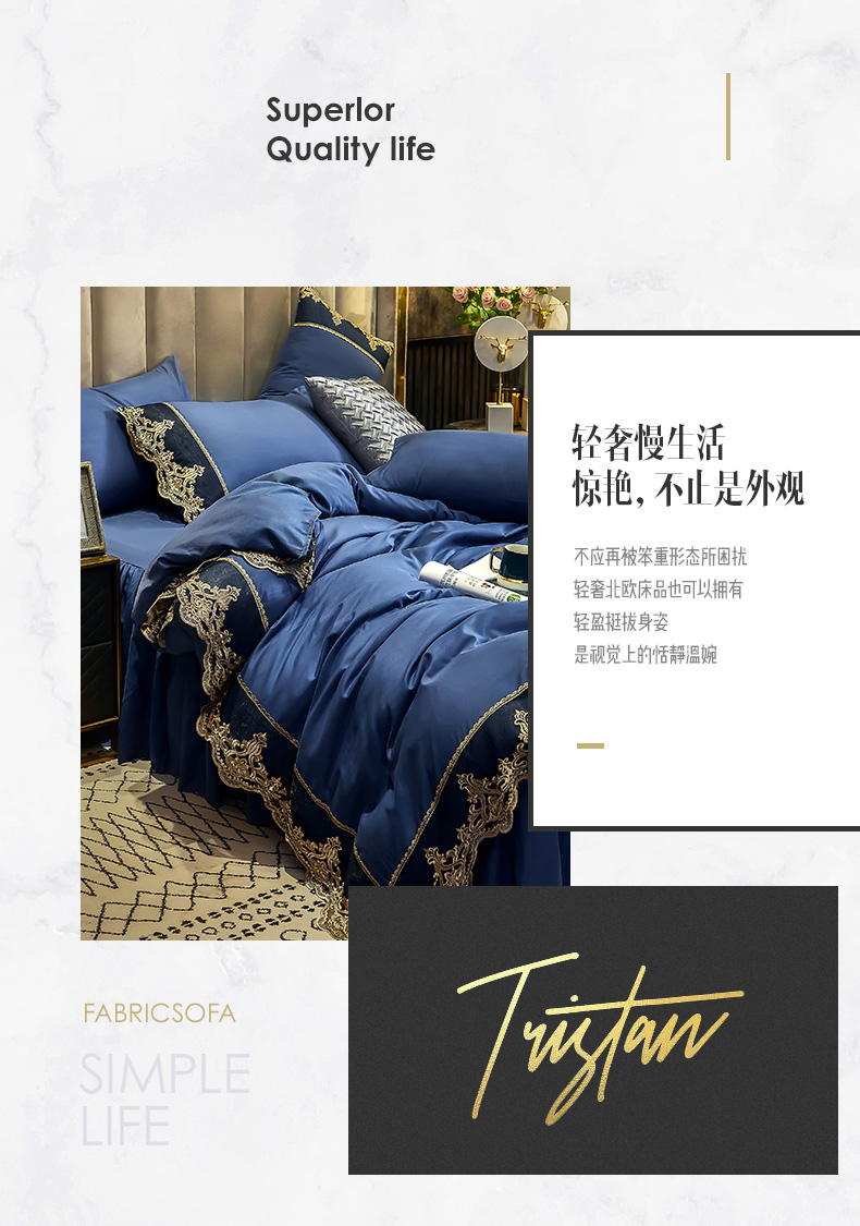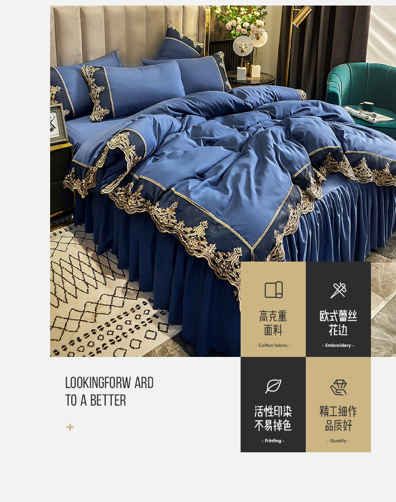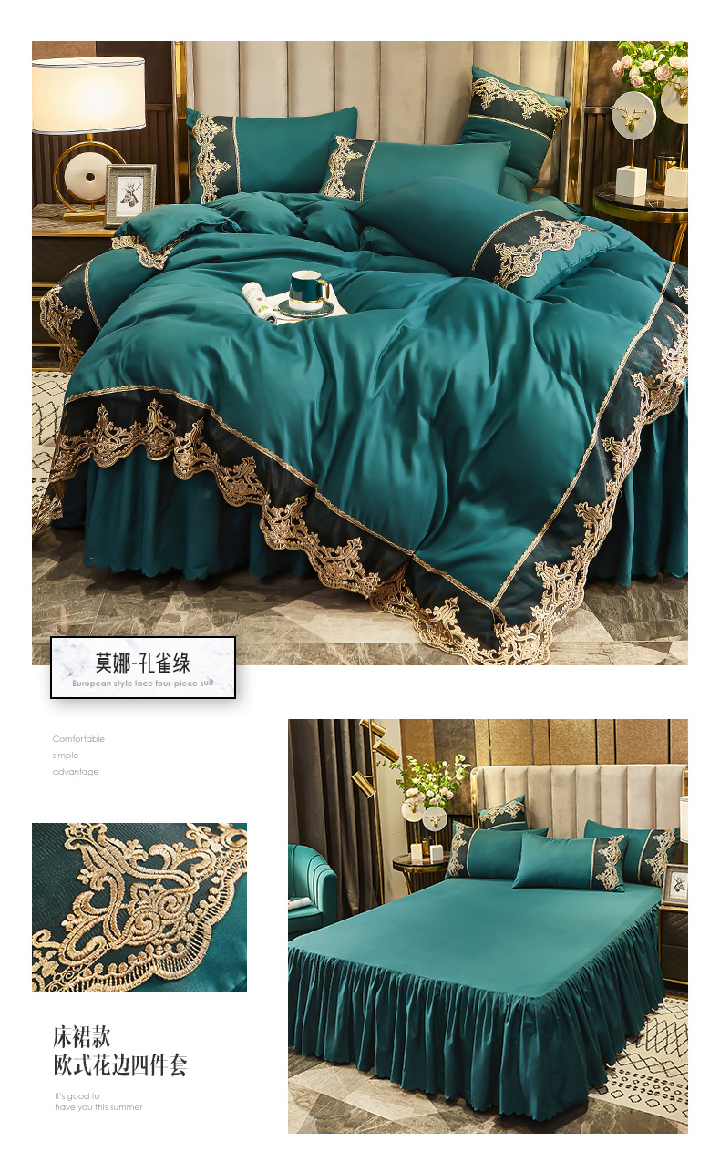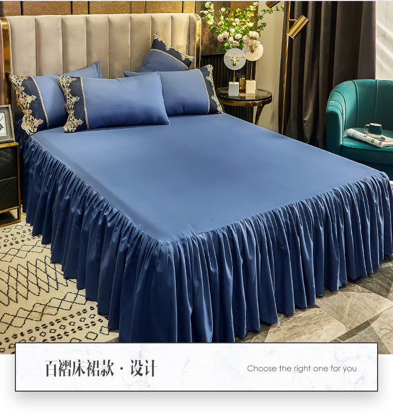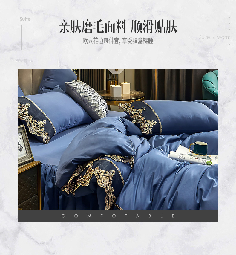 当前位置: 91家纺网 > 商品网购 > 床品套件 > 四件套 > 普通磨毛四件套 > 沐珩家纺 2026新款轻奢典藏艺术亲肤磨毛欧式花边床裙款四件套-莫娜 莫娜-梦之蓝