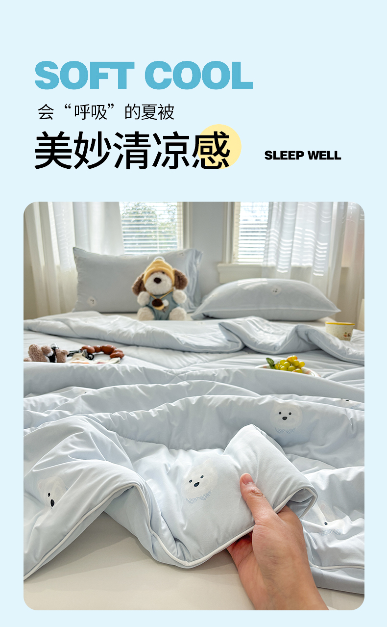 商品名称:益多眠 【同款超低价】2026新款锦氨夏凉被凉感丝夏被空调被单人夏被自带凉感冰丝夏被【四周踩棉】 泡芙狗