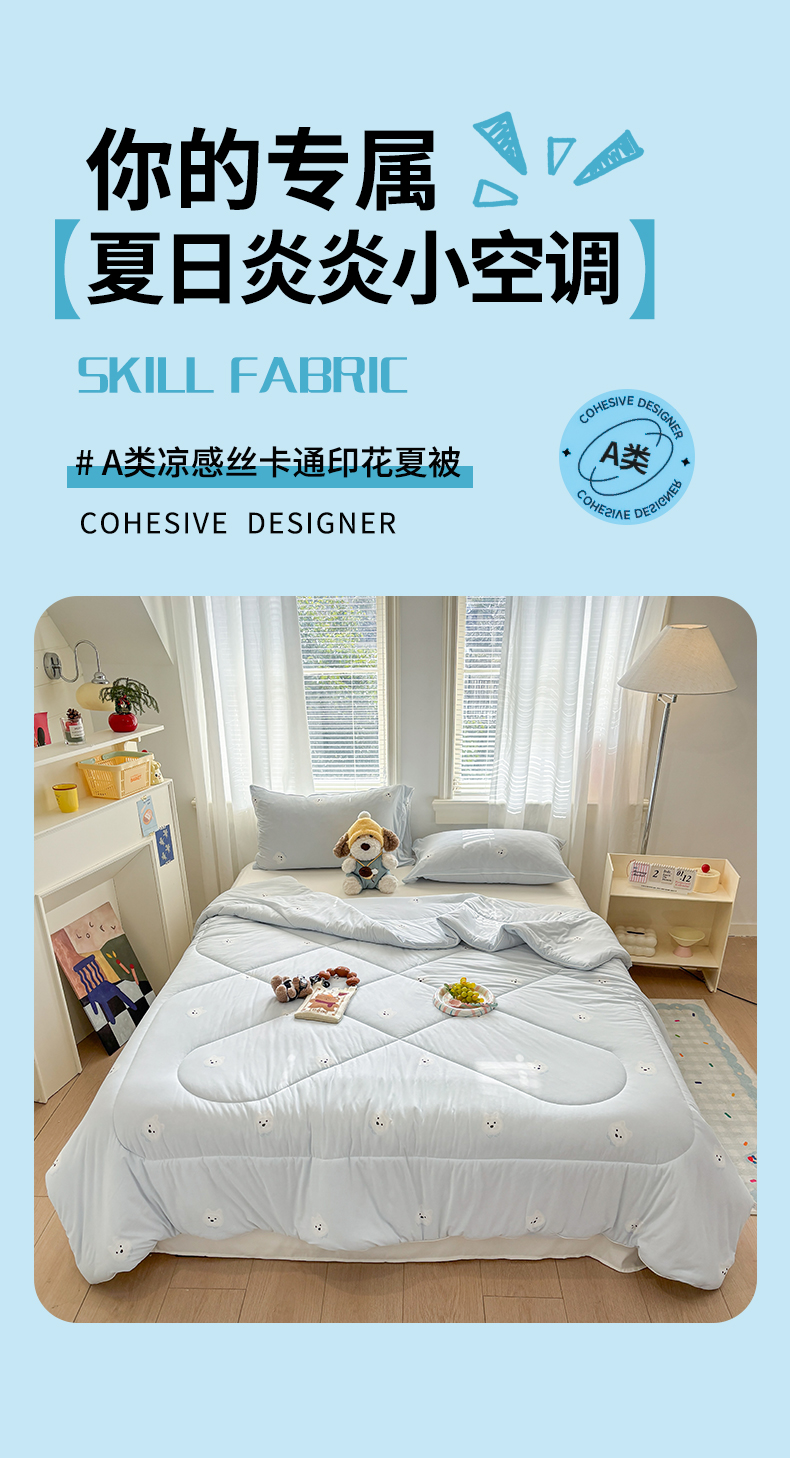 (总)益多眠 【同款超低价】2026新款锦氨夏凉被凉感丝夏被空调被单人夏被自带凉感冰丝夏被【四周踩棉】,爱心小熊,粉裙女孩,格子小狗,萌宠派对,奶蓝小猫,泡芙狗,小木马,星星人