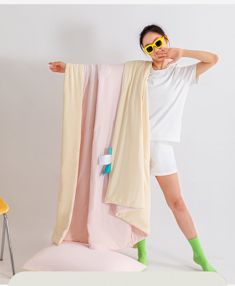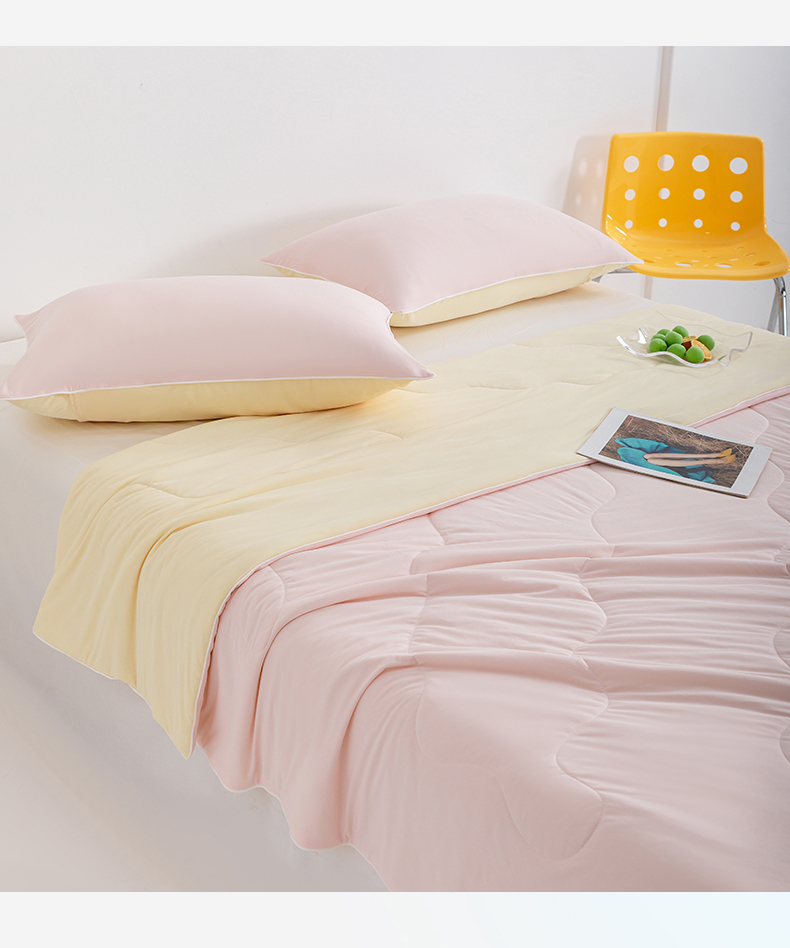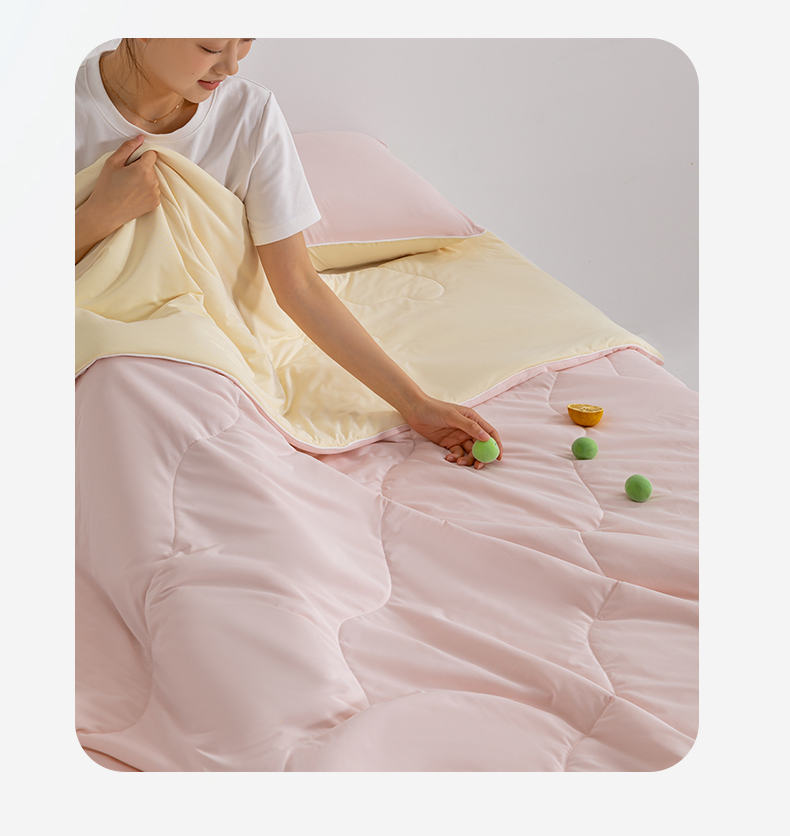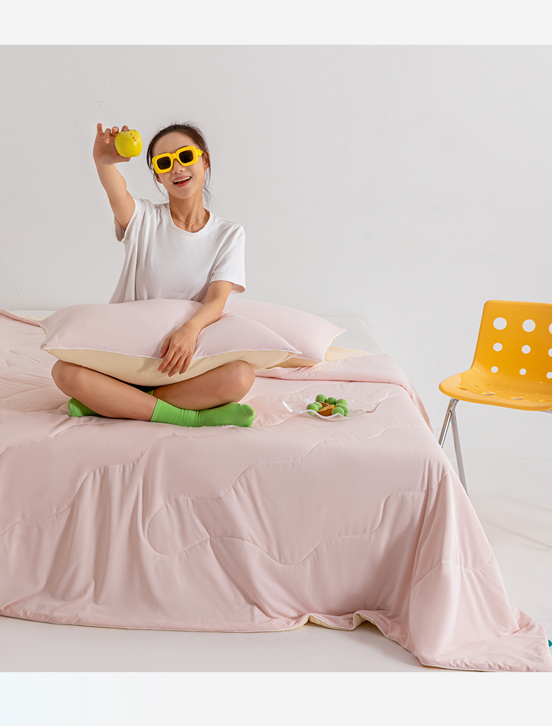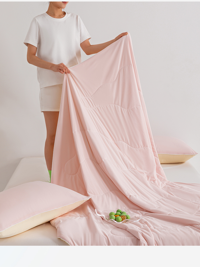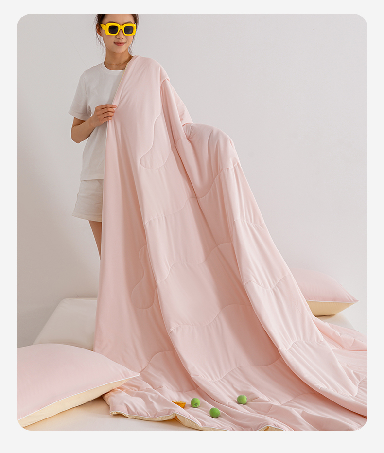 梵心家纺 2026新款凉感A类氨纶凉感丝夏被(10%氨纶)空调被大豆夏凉被 冰莓粉+淡黄