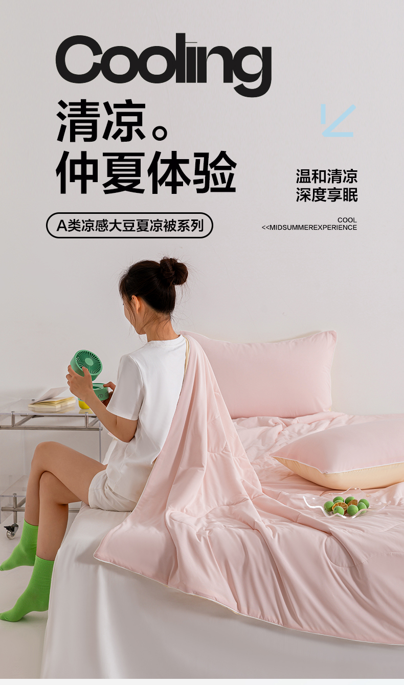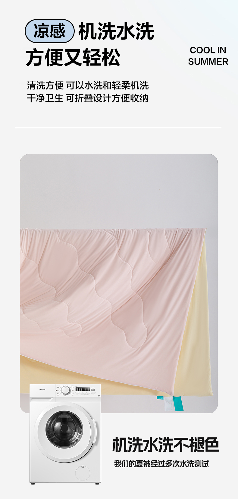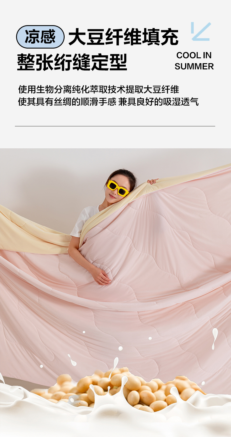 商品名称:梵心家纺 2026新款凉感A类氨纶凉感丝夏被(10%氨纶)空调被大豆夏凉被 冰莓粉+淡黄