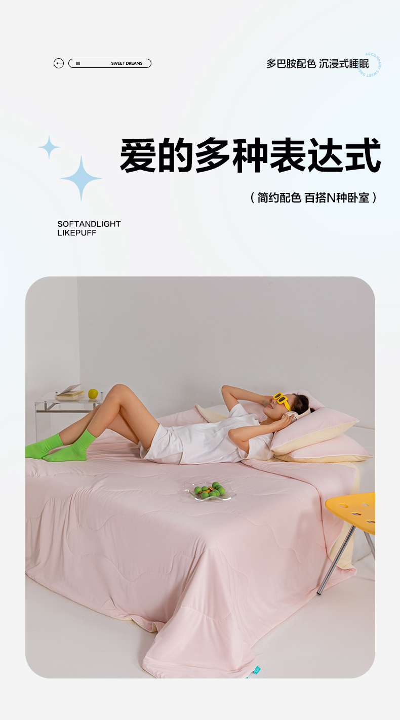 (总)梵心家纺 2026新款凉感A类氨纶凉感丝夏被(10%氨纶)空调被大豆夏凉被,浅蓝+淡黄,冰莓粉+淡黄,珍珠灰+水蓝,深睡蓝por,果绿+冰莓粉,冰莓粉+浅蓝,白桃粉+海风兰,组合图