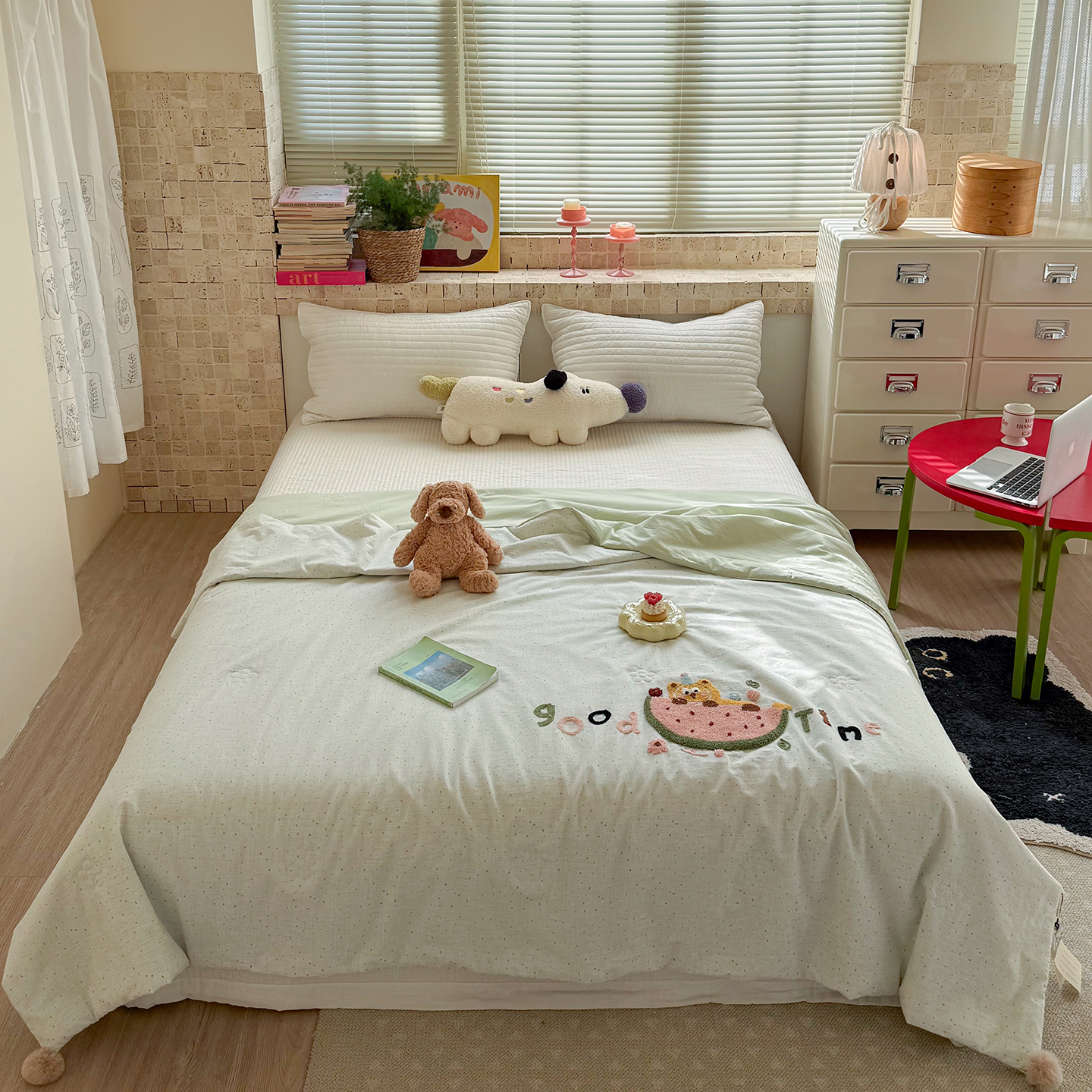 (总)有货 2026新款棉麻提花印花毛巾绣夏被春秋被被子被芯-甜趣,草莓兔,橘子卡比,蓝莓马,柠檬熊,青苹果熊,西瓜猫,香蕉猫,樱桃娃娃,组合