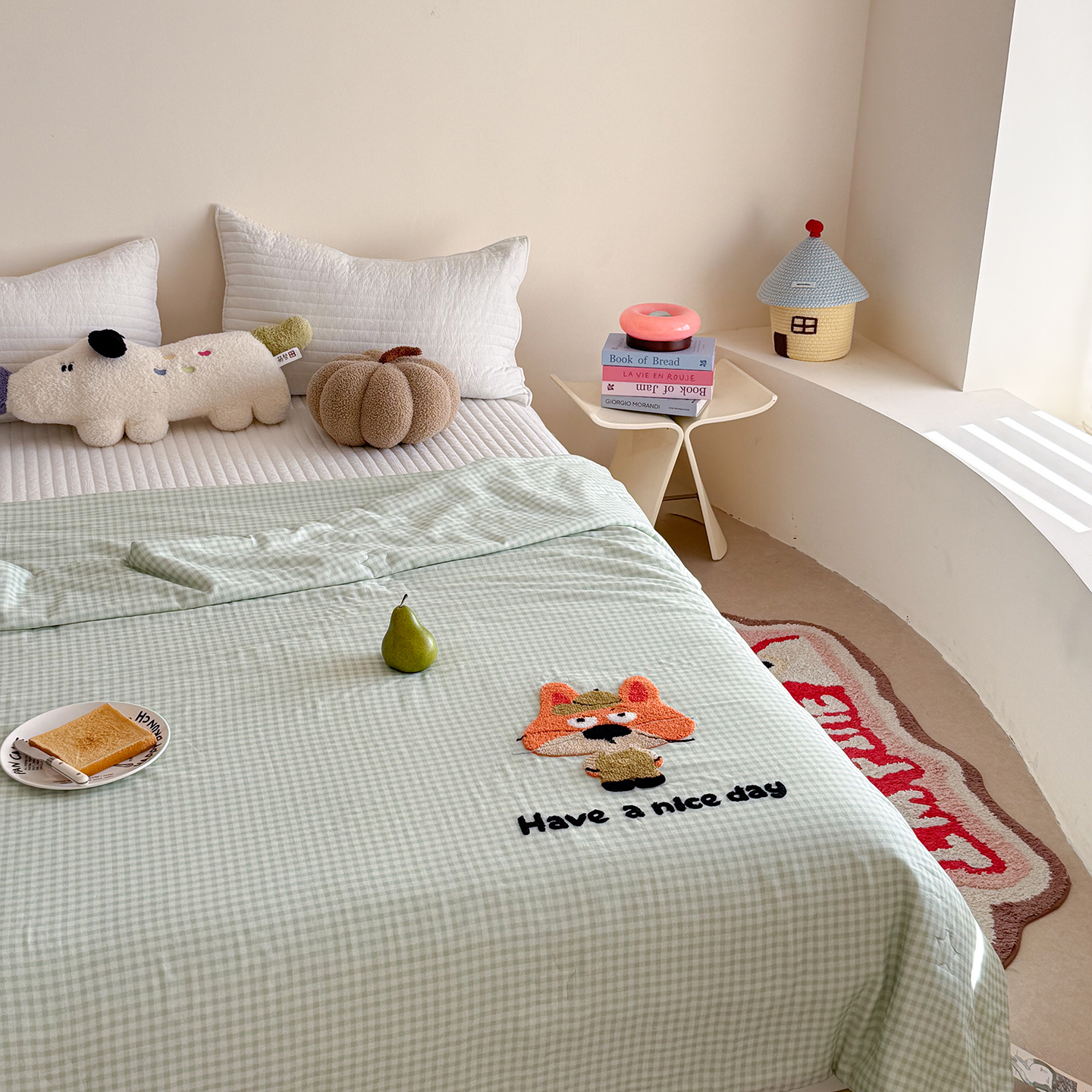 (总)有货 2026新款全棉双层纱毛巾绣夏被春秋被被子被芯-森林萌宠,大耳粉兔,佛系水豚,狐小狸,马小帅,森林精灵,香蕉贝贝,组合
