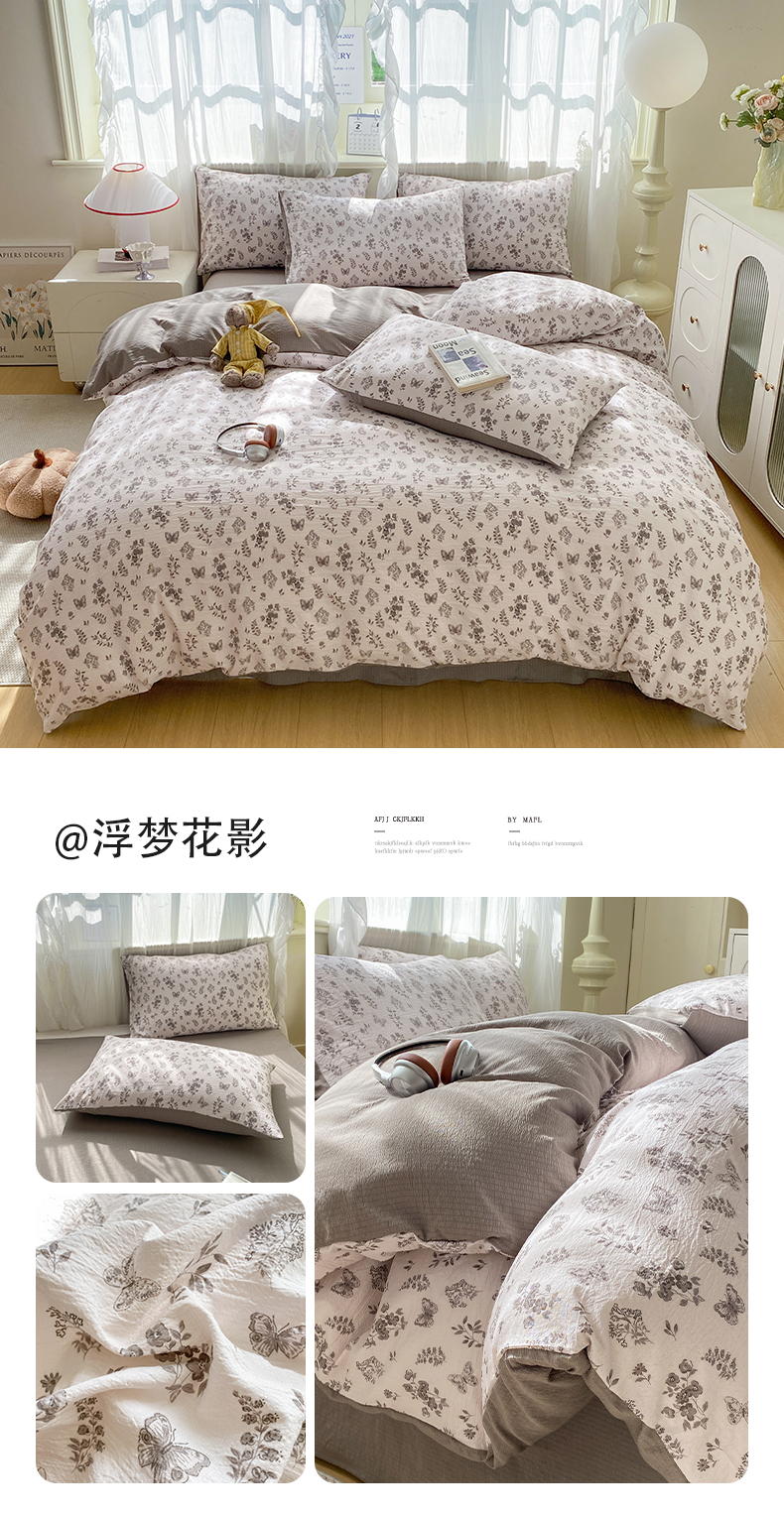当前位置: 91家纺网 > 商品网购 > 床品套件 > 四件套 > 其它四件套 > 红日子纺织品 2026春夏云感复古+小清新皱皱纱四件套 半岛花园