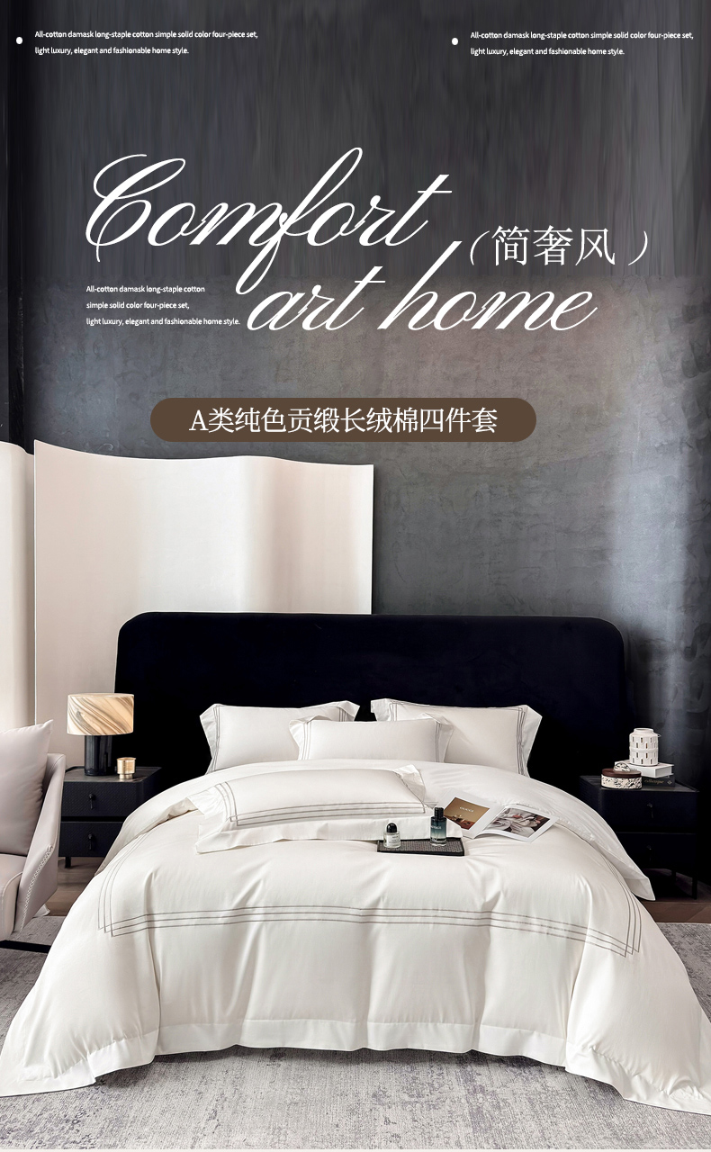 (总)星蕴家纺 2026新款贡缎长绒棉四件套-简爱,简爱-珍珠白,简爱-高级灰,简爱-香槟金,简爱-云山蓝,简爱-可可粉