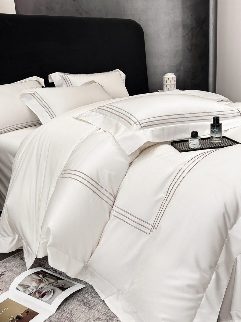(总)星蕴家纺 2026新款双股长绒棉全棉纯棉刺绣四件套-柏林系列,柏林 贵族白,柏林 星空灰,柏林 云山蓝,柏林 香槟金,柏林 可可粉