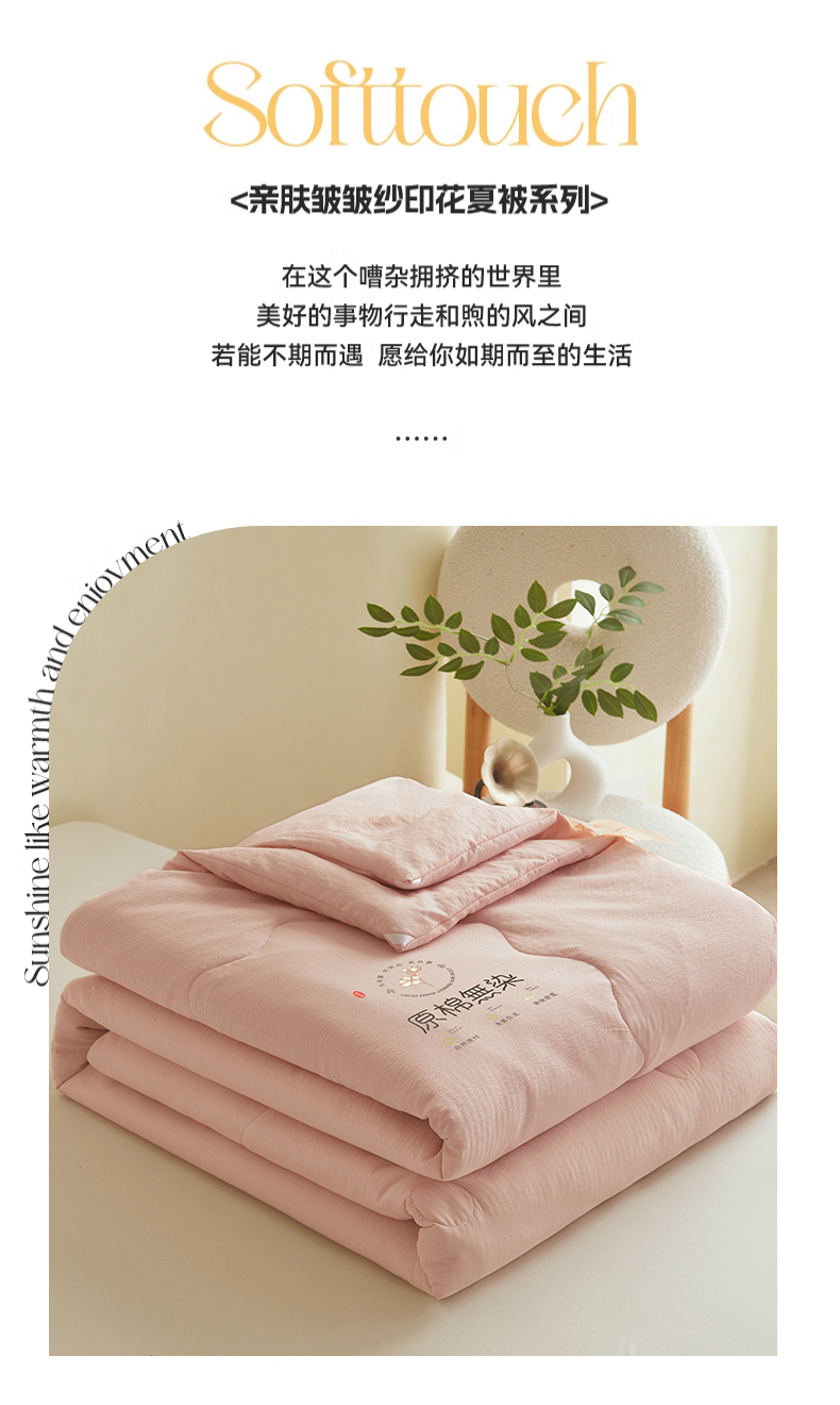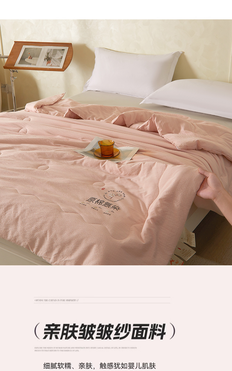 商品名称:友承家纺 皱皱纱木棉双层纱面料大豆纤维夏凉被空调被四季通用被子2026新款单人夏被芯双人可机洗水洗 香槟粉