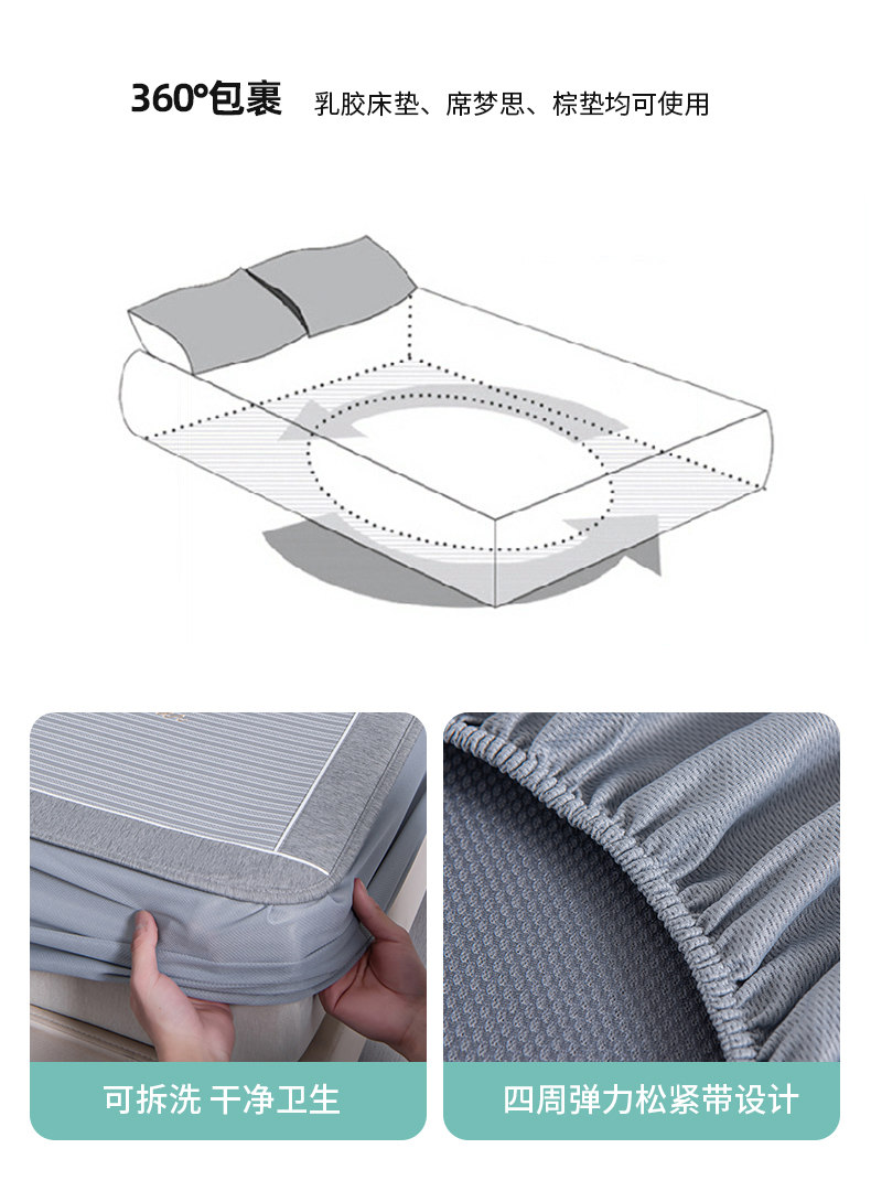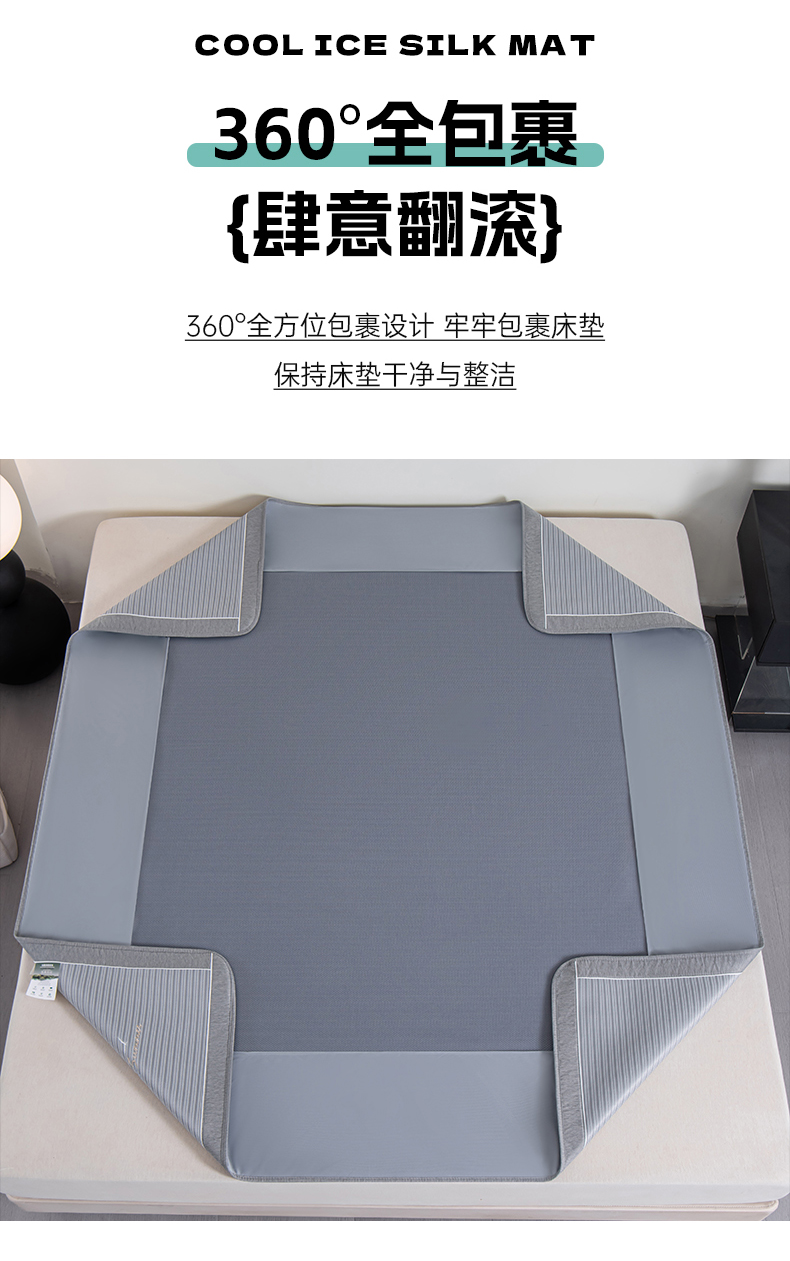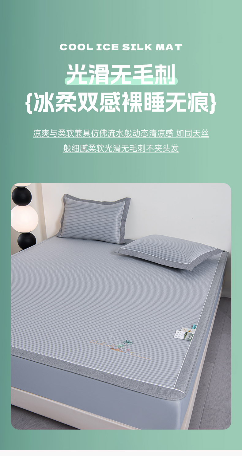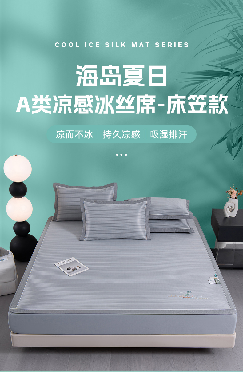 商品名称:小牛席业 2026新款海岛夏日凉感冰丝席系列(床笠款) 海岛夏日-灰色