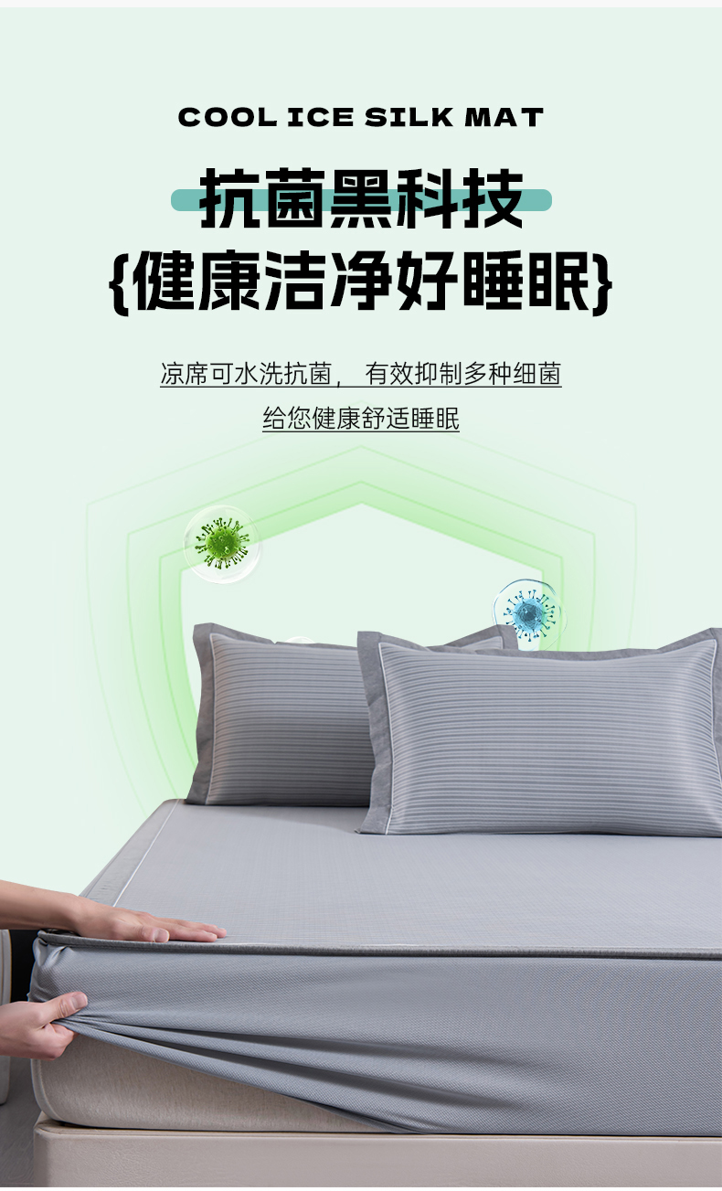 (总)小牛席业 2026新款小冰块大象凉感冰丝席(床笠款)凉席竹席藤席冰藤席乳胶席豆豆席,绿色,粉色,灰色,蓝色,香槟